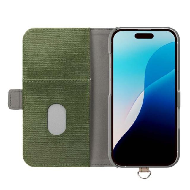 iPhone16Pro フリップカバー キャンバス/カーキ PG-24BFP12GR