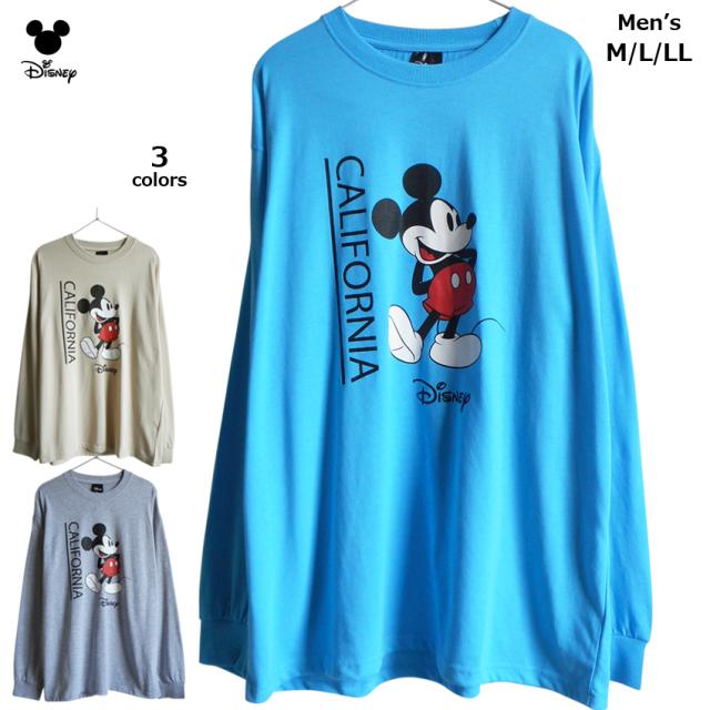 送料無料 ディズニー ミッキー 長袖Tシャツ メンズ ロンT ミッキーマウス ビッグサイズ カットソー アメカジ シンプル 薄手 ペアルック かわいい おしゃれ 袖リブ アメコミ カリフォルニア レトロ ビンテージ風 レディース ぽっちゃり ゆったり ベージュ グレー ブルー