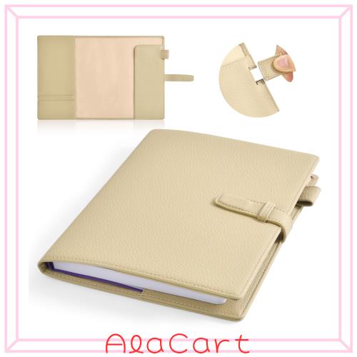 考え抜かれたデザイン:ペンホルダーにはゴム紐とつながっているため、いろんな太さのペンは差し込み、ゴム紐を引っ張って伸びたり、縮んたりしてペンを固定できます。(ペンはついておりません)。サイズは約22.7×17.1cmで、A5サイズのノートにぴったり収まります。差し込みタイプのベルトなので、ノートの厚さにより調節でき、しっかり固定できます。このノードカバーは、毎日の仕事と生活をより簡単でスムーズにします。