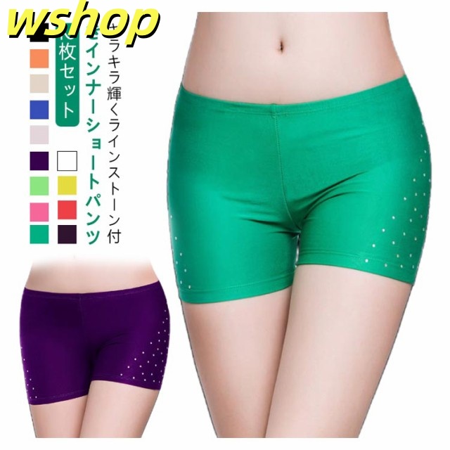 3分丈 アンダーウェア インナー ショートパンツ 2枚セット レギンス 見せパンツ ラインストーン付き レディース 女性 透け防止 スパッツ ショート丈 ショートレギンス インナーパンツ 2枚セット 下に履く カバーパンツ パンツ