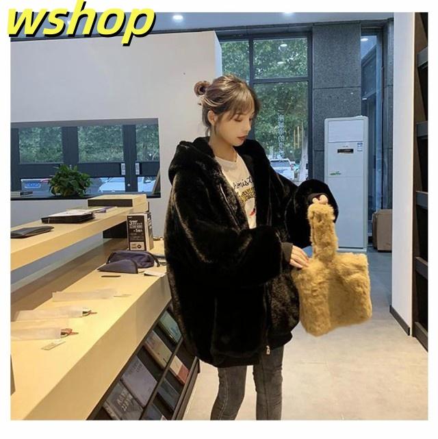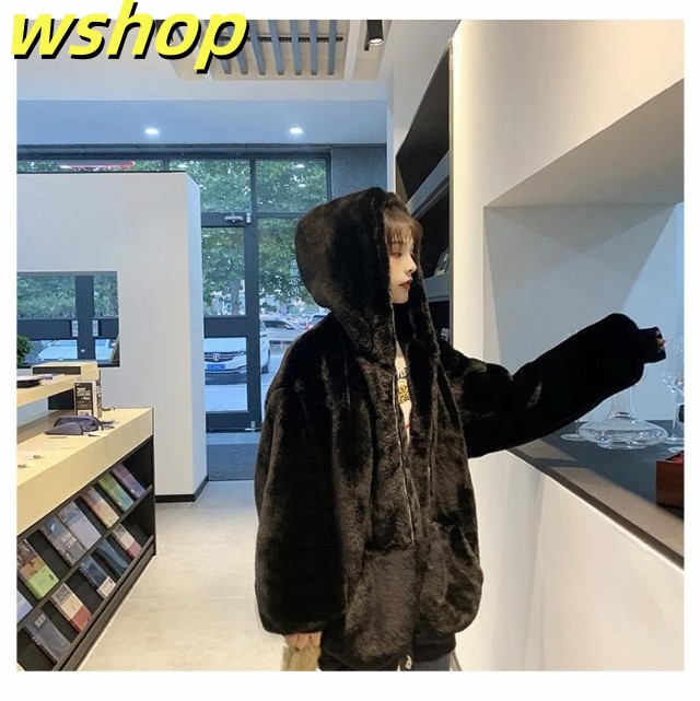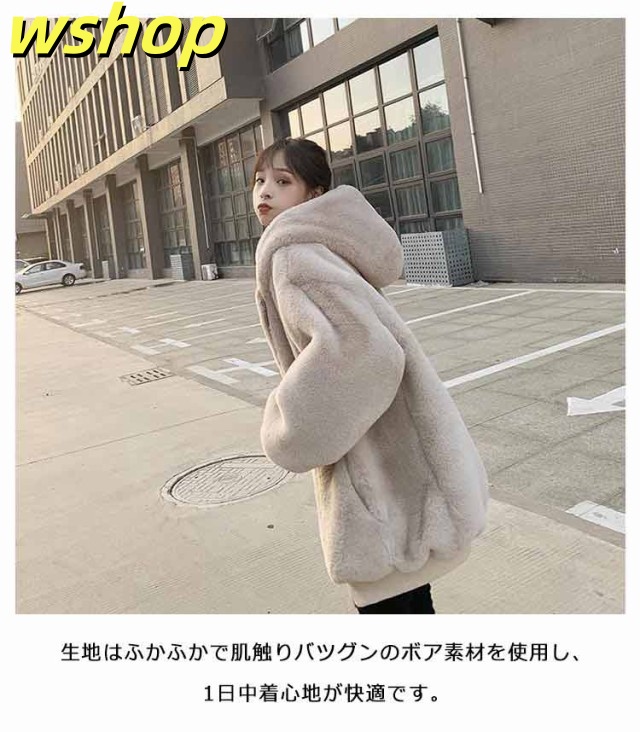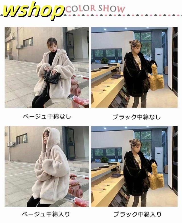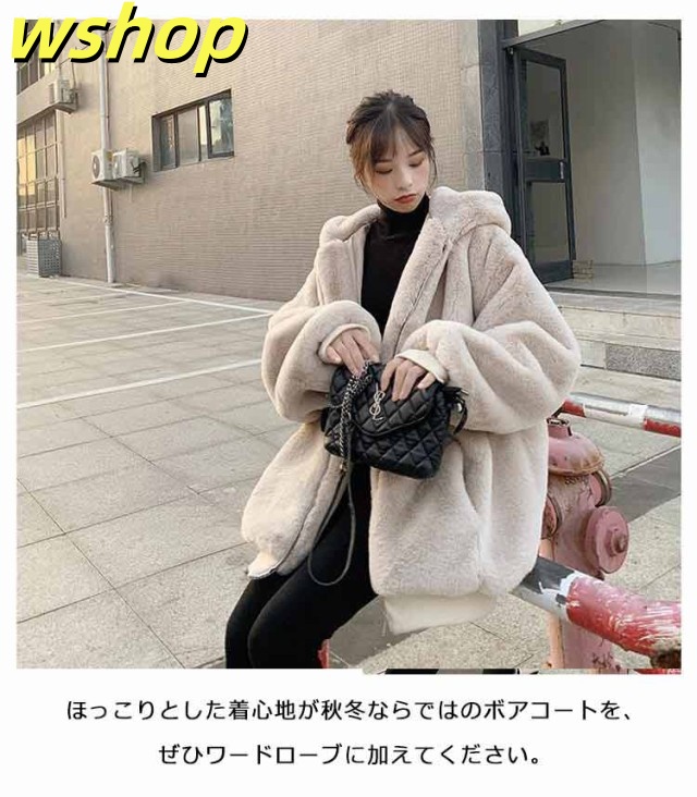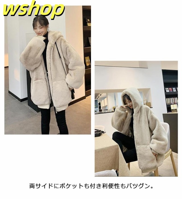 【wshop 】ドロップスリーブ ジャケット ムートンコート フェイクムートン 毛皮コート ミディアム丈 ファーコート ゆったり アウター 暖かい オーバーサイズ フェイクファー 大きいサイズ 防寒 カジュアル レディース もこもこ 体型カバー ボアコート