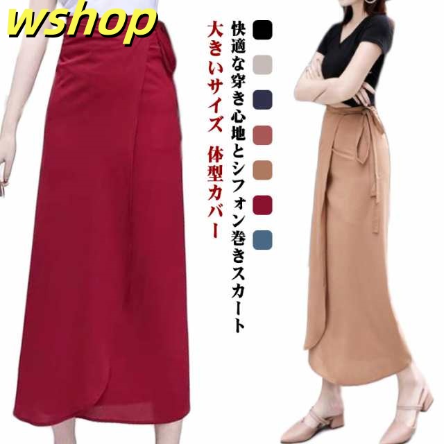 スカート 夏 無地 レディース ロング ラップスカート ロングスカート 巻きスカート ミモレ丈 女性 大きいサイズ ビーチグッズ シフォン ロング丈 着?せ フレアスカート シンプル 20代 30代 40代 50代 UVカット ダンス 海 大人 体型カバー マキシスカート フリーサイズ 夏