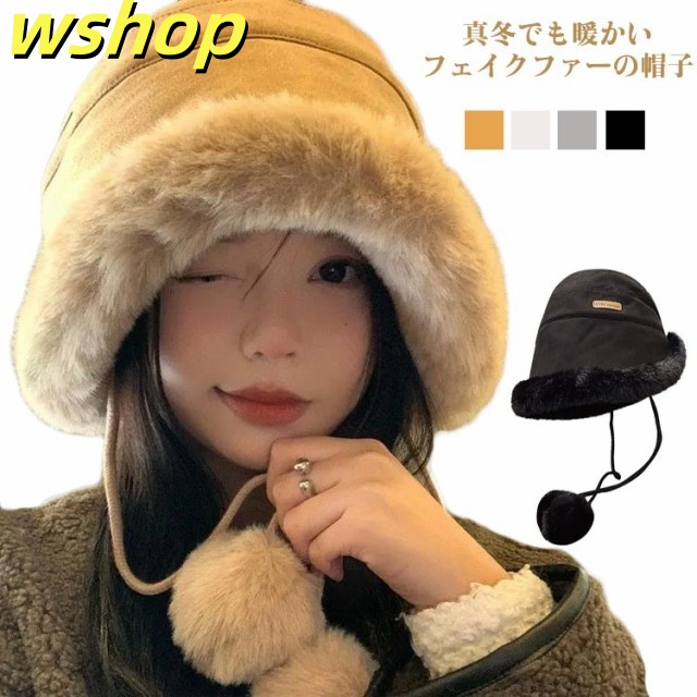 【wshop 】レディース ハット 防寒 バケットハット 大きいサイズ 冬 ロシアンハット 帽子 小顔効果 ロシア帽 エコファーハット バケット帽子 ふわふわ もこもこ帽子 秋冬 帽子 バケハ ファー 秋冬 無地 暖かい 耳保護 レディースハット 秋冬帽子 一体型ハット 厚手 防寒