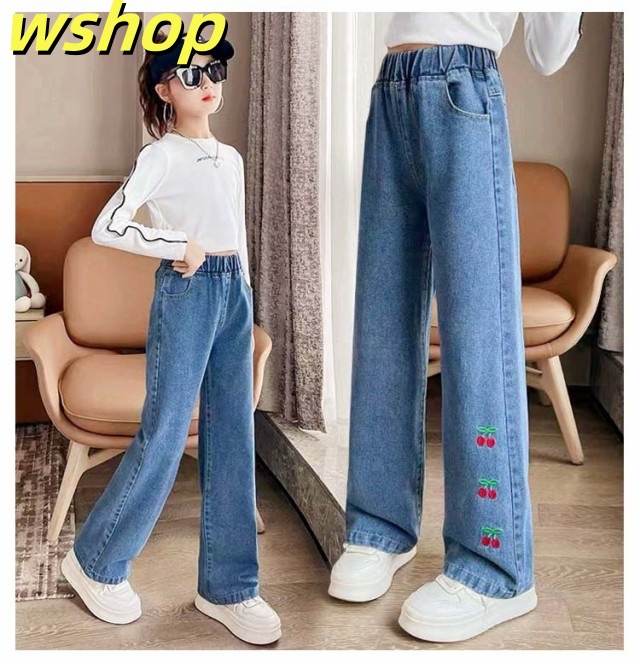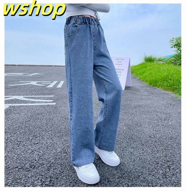 収納便利 ランキング常連 ウエストゴム デニムパンツ 100cm ダメージ加工 130cm ガールズ ジーパン 女児 ジーンズ 110cm 120cm 中学生 150cm キッズ 女の子 長ズボン セミワイド 小学生 】デニムパンツ 春 ジュニア パンツ ストレートパンツ ボ 秋 140cm 【wshop 在庫わずか