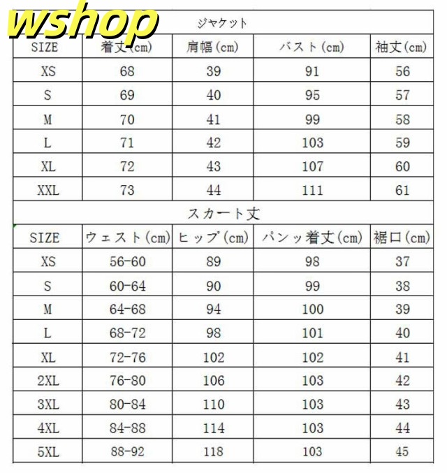 | サイズについての説明 | 内容:2点セット ジャケット+ストレートパンツ サイズ表は画像をご参照ください |
