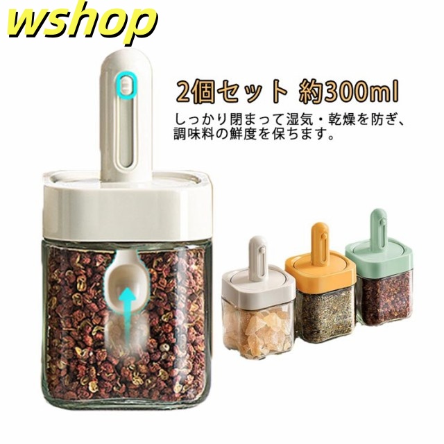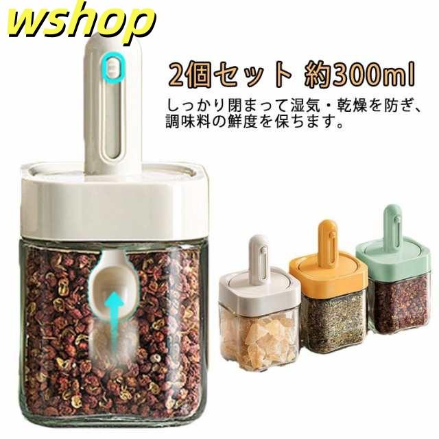 軽量仕様 SNS話題 2個セット 使いやすい スパイスボトル 塩 胡椒 塩入れ 約300ml 耐熱ガラス 砂糖 調味料入れ 】砂糖入れ 保存容器 スパイス入れ おしゃれ ボトル スリム 新生活 卓上 【wshop スプーン付き かわいい キャンプ 密閉ポット 収納 湿気防止 今だけ限定