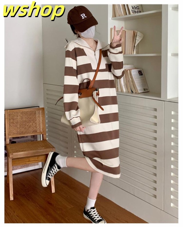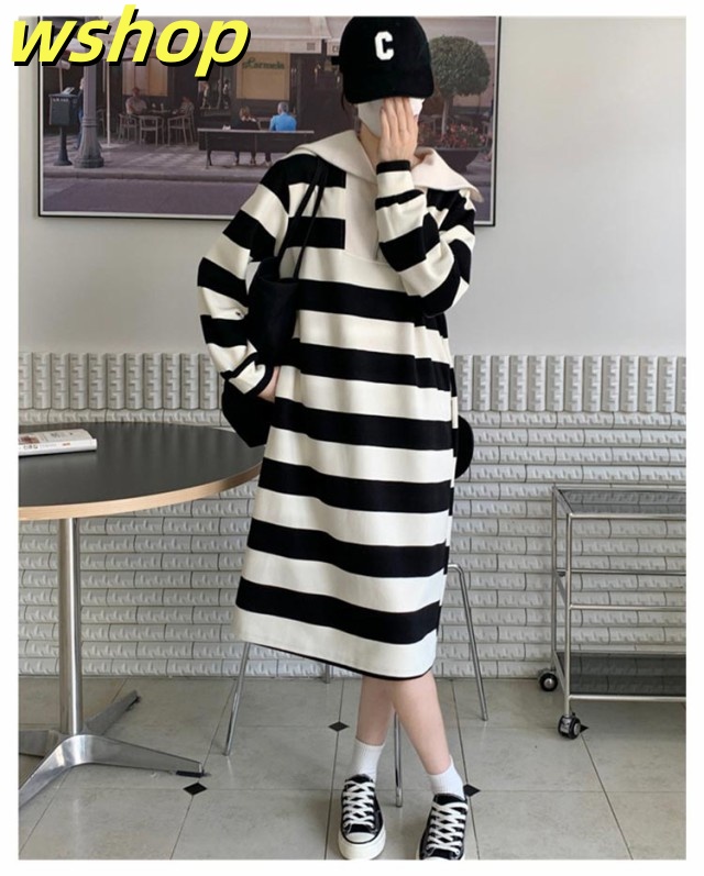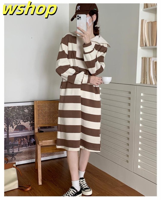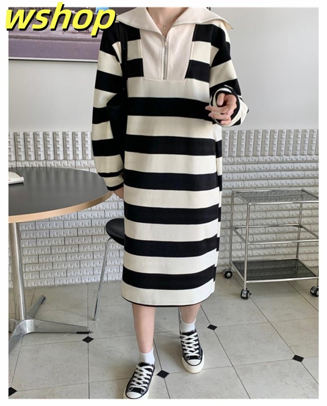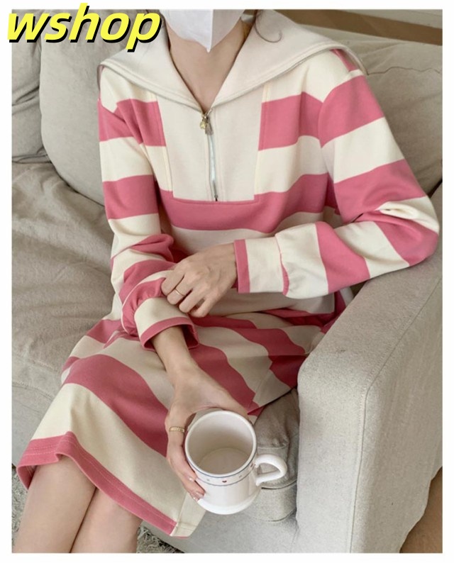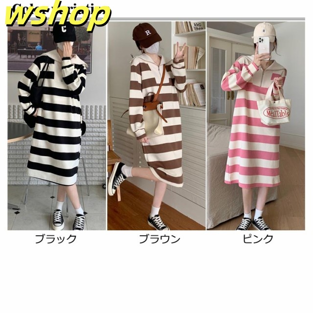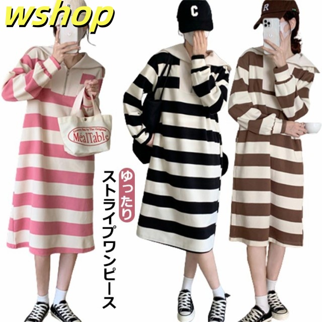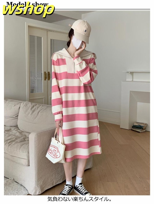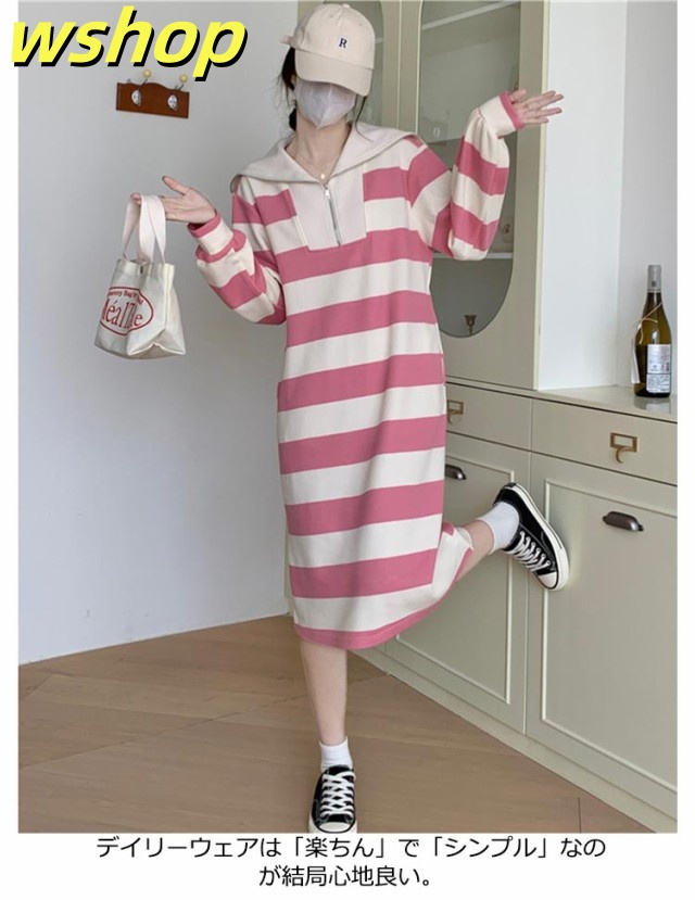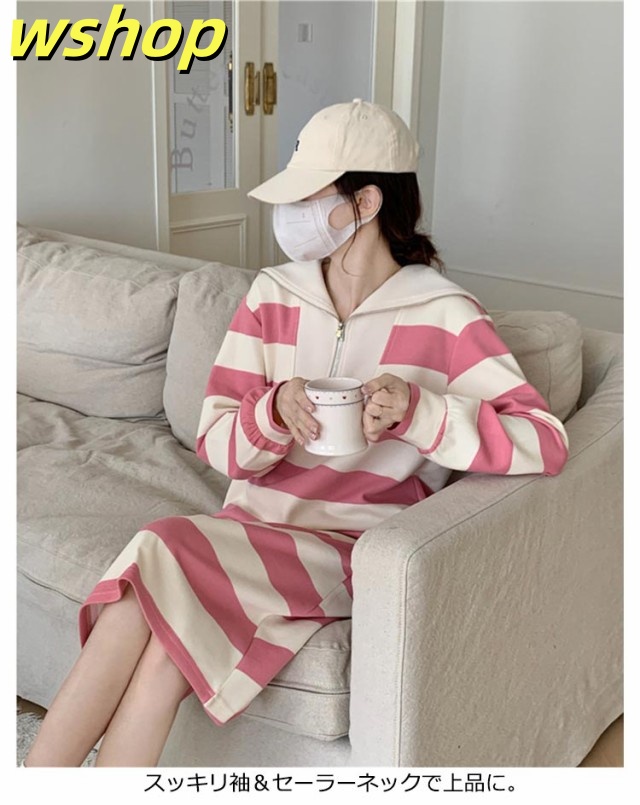 人気急上昇 売上急増中 冬 ポッケト ロング丈 セーラー ふんわり ワンピ 長袖 ミモレ丈 綿混 膝下 ゆったり ストライプ 秋 】インナー ルームウェア 【wshop セーラーネック 無地 ワンピース 裏毛 レディース ボーダー 今だけ限定