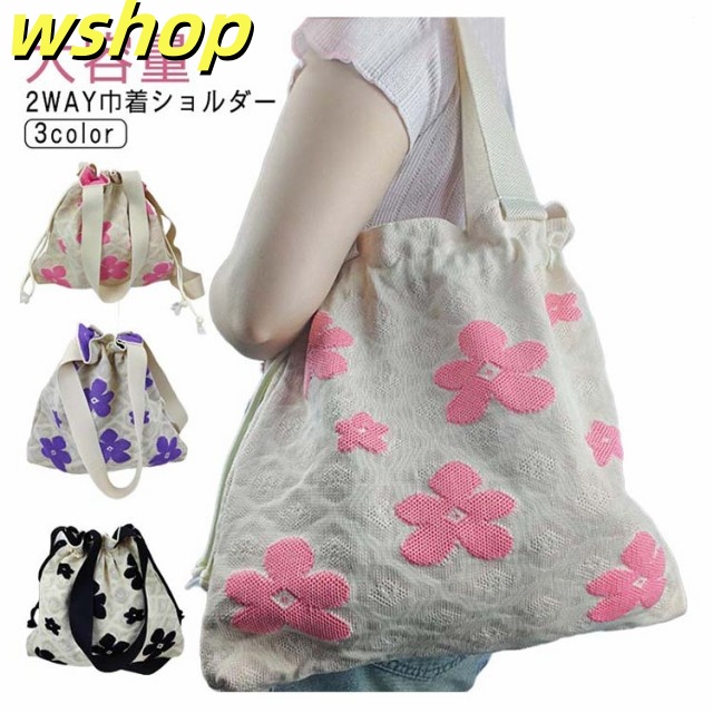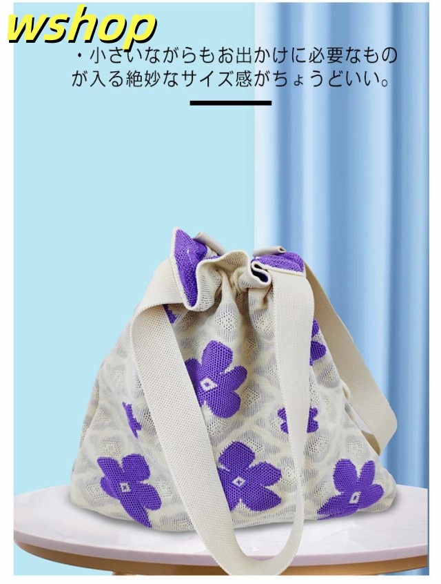 季節限定アイテム 店長太鼓判 巾着ポーチ 】ニットバッグ 手提げ 花柄 洗える 巾着バッグ SNS話題 トートバッグ 可愛い 肩掛け かわいい ニットバッグ 浴衣 斜めがけ 即納OK ショルダーバッグ 軽量 送料無料 ショルダー 【wshop 2way 旅行 大容量 お買い得プライス