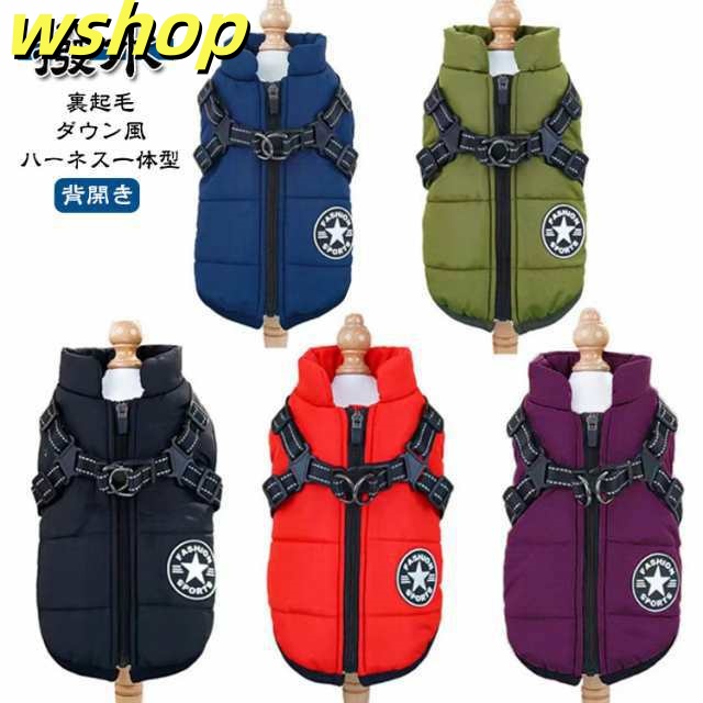 即納OK レビュー高評価 撥水 裏起毛 背中開き 】ベスト 暖かい アウター S-5XL!犬 防寒 着せやすい 散歩着 犬の服 タンクトップ ハーネス付き ジャケット ジッパー ドッグウェア 秋冬 ファスナー ダウン風 【wshop 服 あったか 今だけ限定