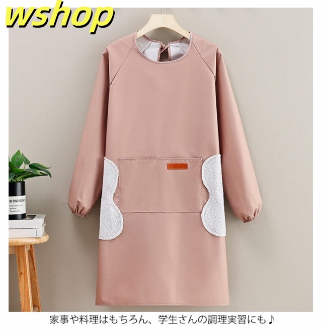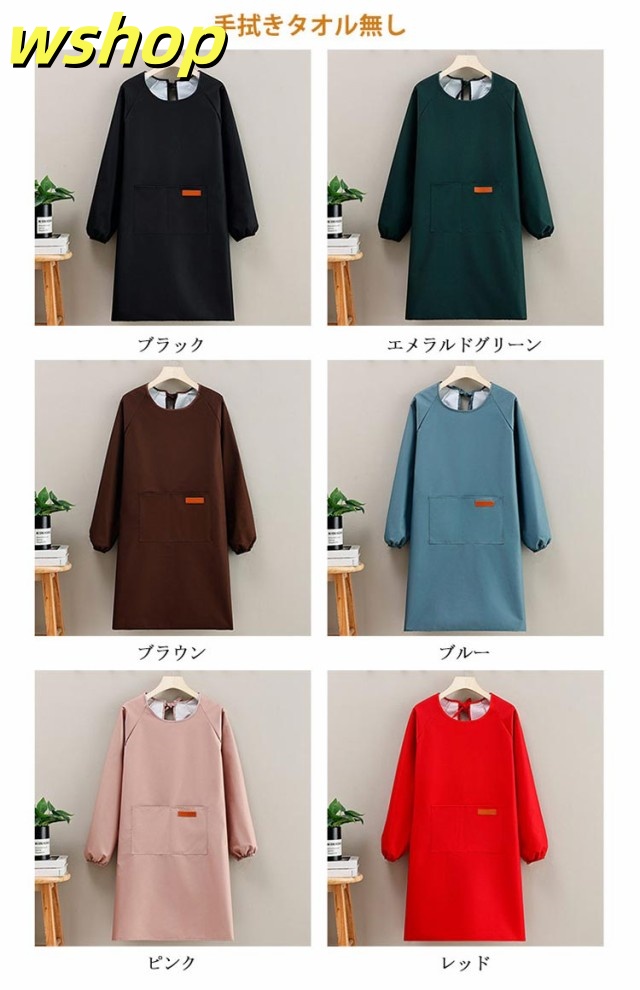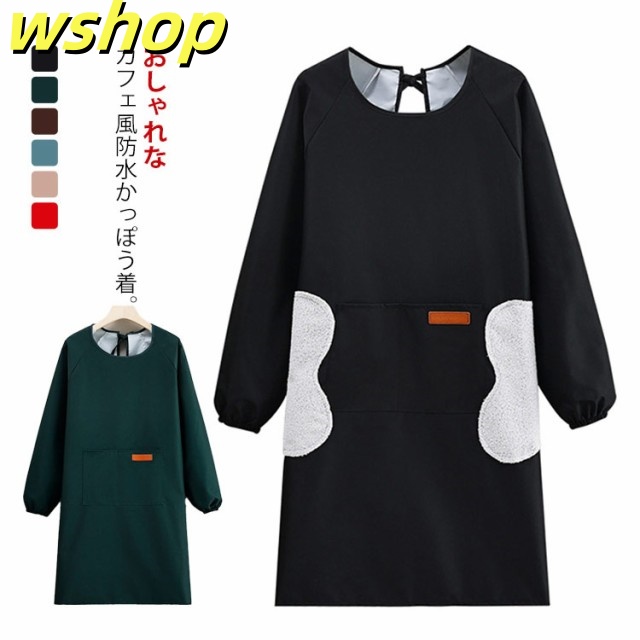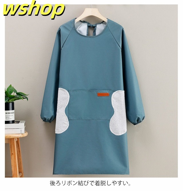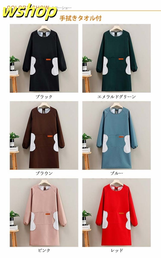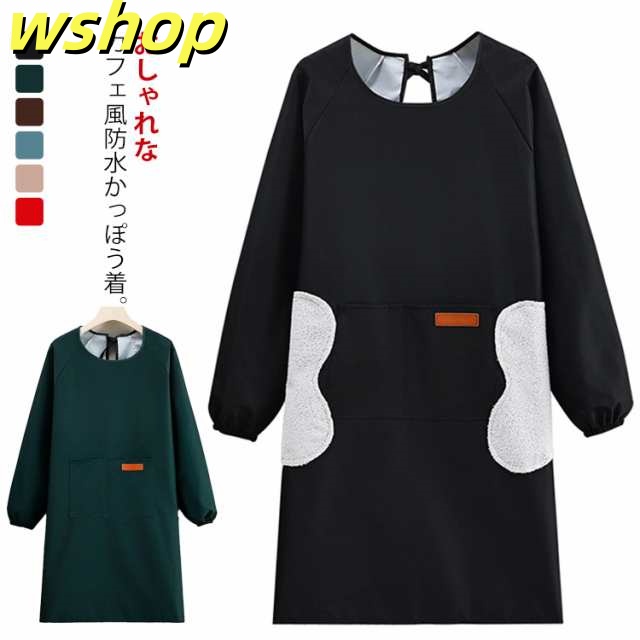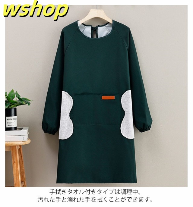 人気急上昇 レビュー高評価 【wshop 手拭きタオル付き 】手拭きタオルなし 防汚 保育士 選べる2種類 カフェエプロン かっぽう着 ポケット付き 撥水加工 袖口ゴム 袖リブ かっぽうぎ 撥水 スモック エプロン ワークエプロン 業務用 長袖 飲食店 送料無料
