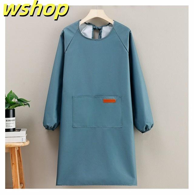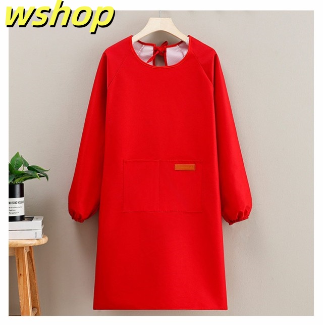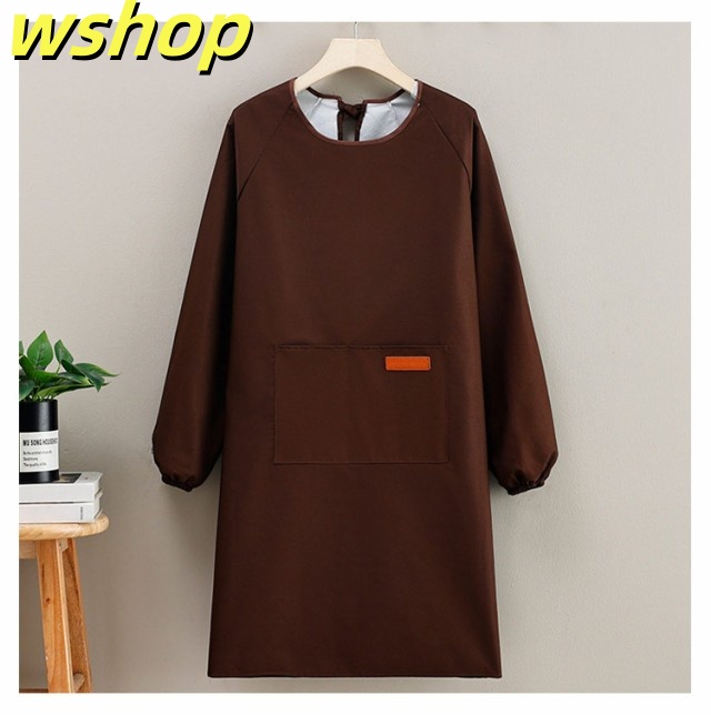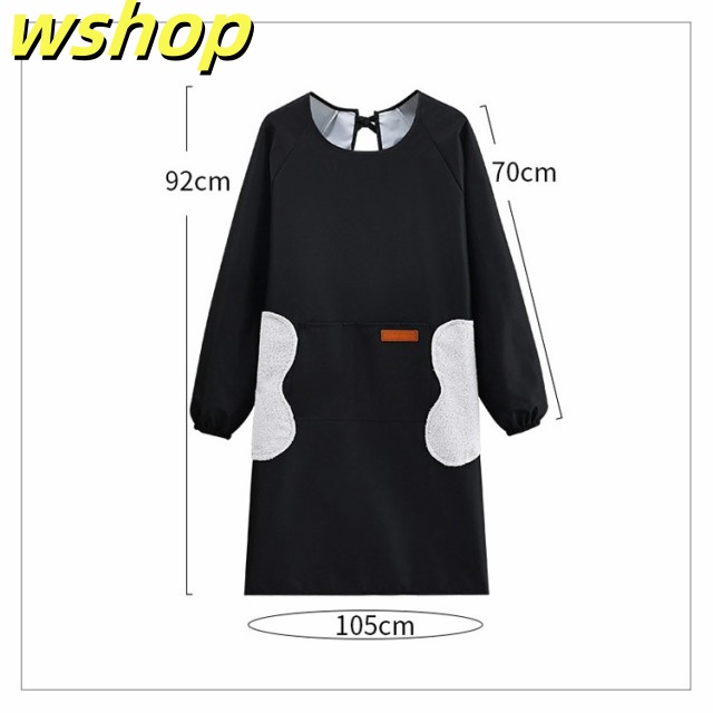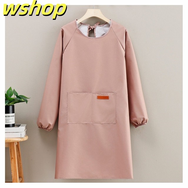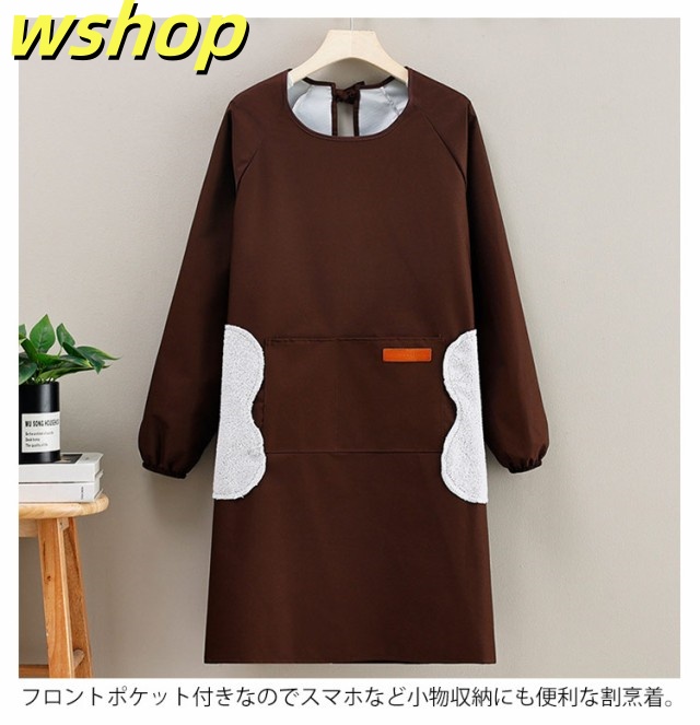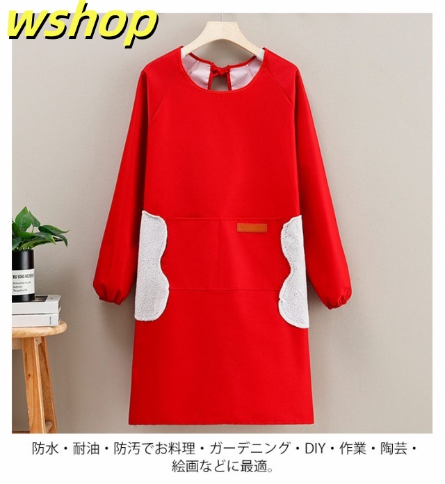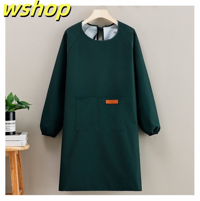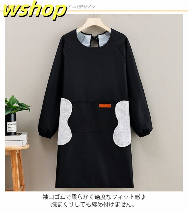 人気急上昇 レビュー高評価 【wshop 手拭きタオル付き 】手拭きタオルなし 防汚 保育士 選べる2種類 カフェエプロン かっぽう着 ポケット付き 撥水加工 袖口ゴム 袖リブ かっぽうぎ 撥水 スモック エプロン ワークエプロン 業務用 長袖 飲食店 送料無料