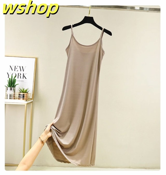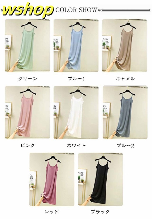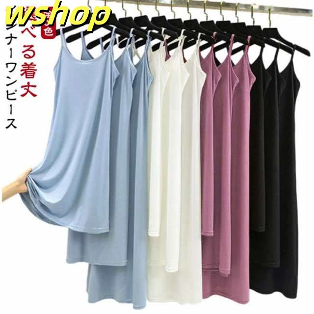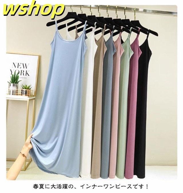 透け防止 蒸れない インナーワンピース ペチコート スリップ 薄手 マキシ丈 レディース 速乾 ノースリーブ シンプル 夏 サラサラ キャミソールワンピース ストレッチ ロング 無地 ルームウェア 選べる着丈