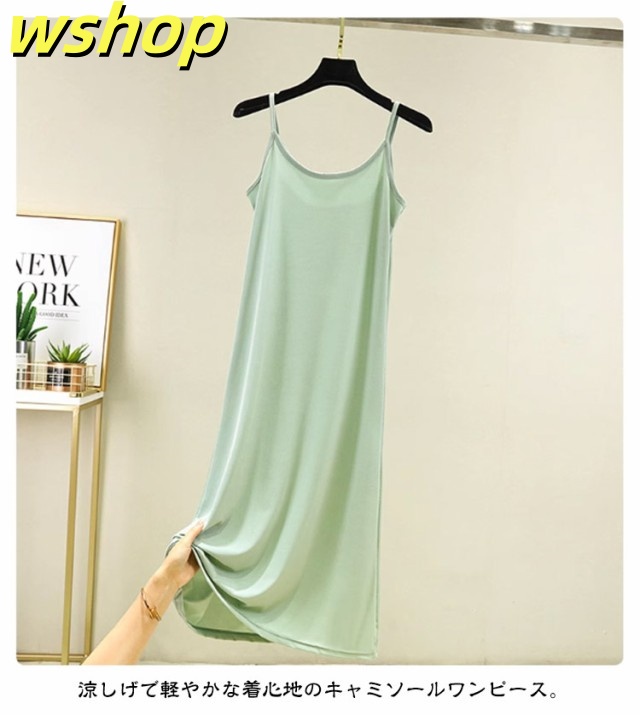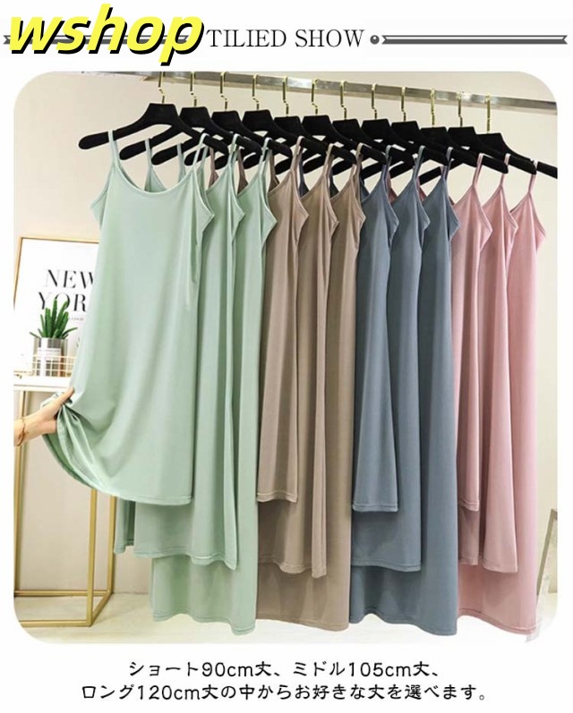 収納便利 SNS話題 スリップ キャミソールワンピース 蒸れない ノースリーブ 速乾 ルームウェア 】透け防止 ペチコート ストレッチ ロング 無地 サラサラ 夏 薄手 インナーワンピース マキシ丈 選べる着丈 【wshop シンプル レディース 今だけ限定