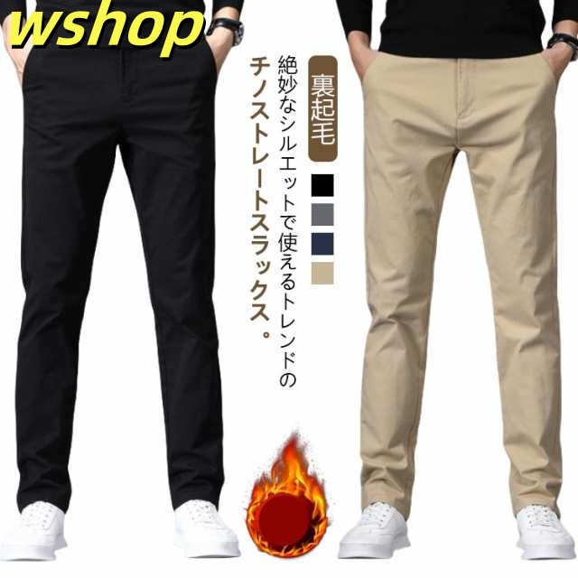 【wshop 】ビジネス ストレート 裏起毛 保温 秋冬 スーツパンツ ノータック 冬用 メンズ ビジカジ スラックス スリム カジュアル パンツ 防寒 チノパンツ 暖かい 暖パン 大きいサイズ 紳士 通勤 ズボン 裏起毛パンツ チノパン 紺 黒 ベージュ グレー カジュアルパンツ