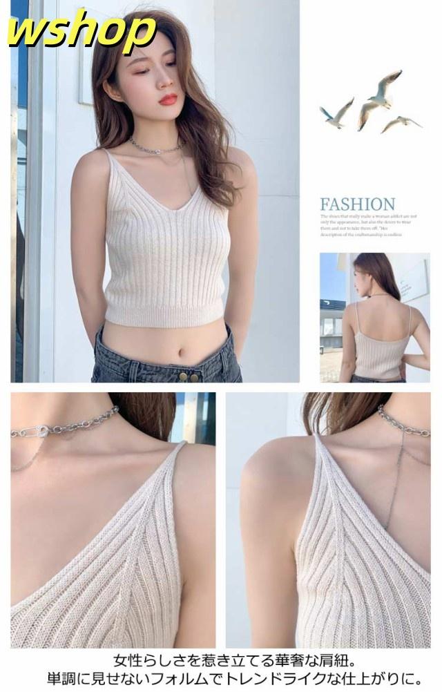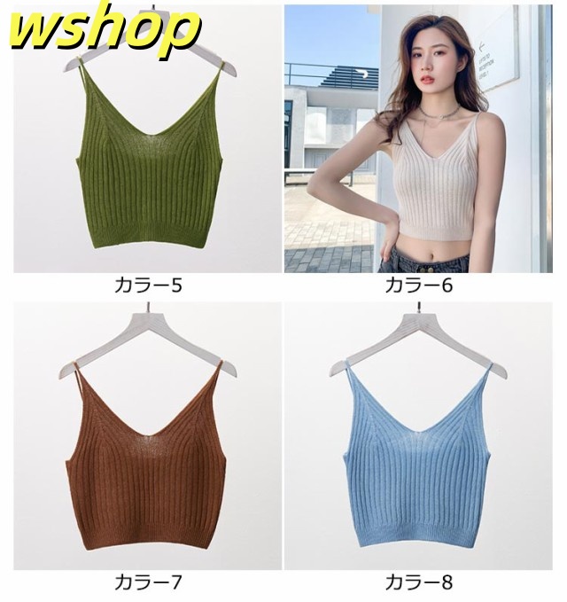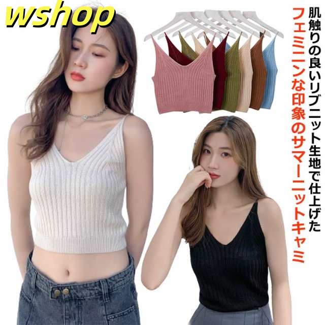 秋の新作特集 多機能デザイン ノースリーブ リブニット SNS話題 【wshop トップス シンプル セクシー 】送料無料 無地 夏 かわいい キャミソール ビスチェ レディース 今だけ サマーニット へそ出し ショート丈 Vネック 話題商品 カットソー 即納対応中