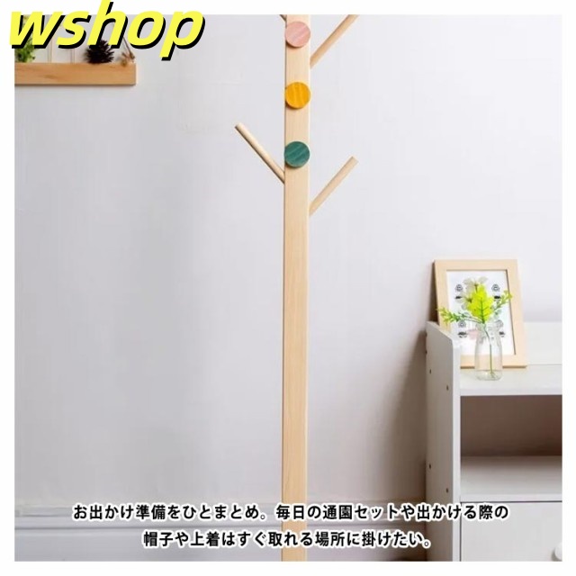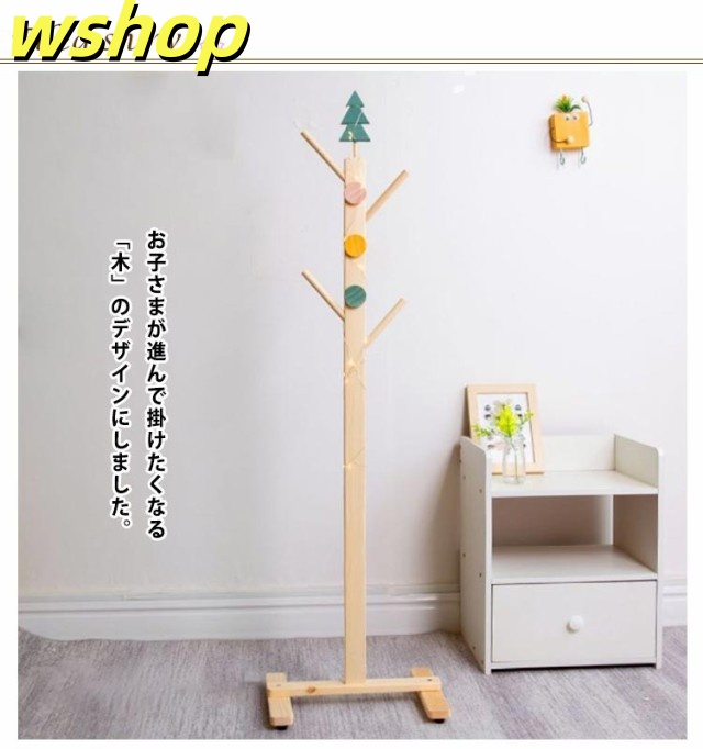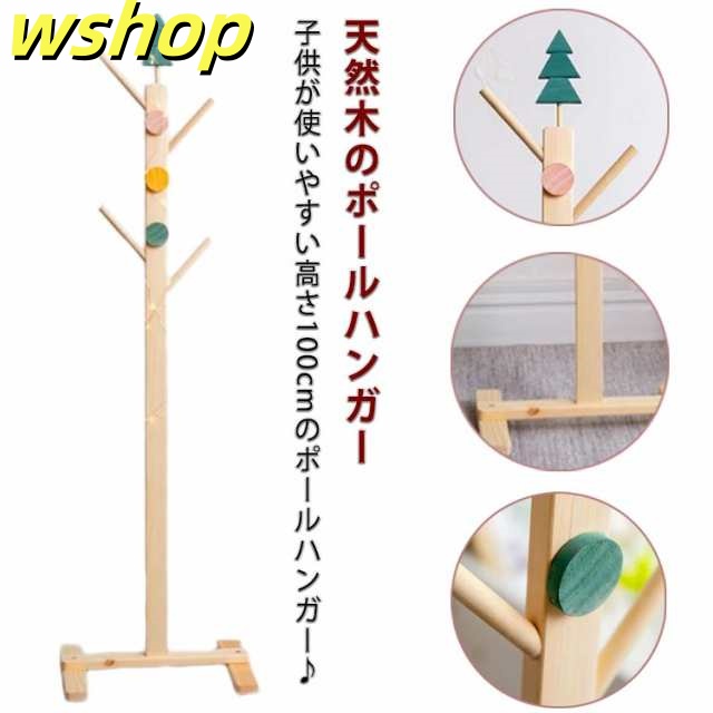 【wshop 】木製 おしゃれ 高さ約100cm 子供 北欧 可愛い キッズ 洋服掛け 通園 子供用 天然木 ラック 子供部屋 玄関収納 コート掛け 帽子掛け 鞄掛け ポールハンガー スリム コンパクト 省スペース 収納 コートハンガー リビング 寝室 通学 ハンガー ナチュラル 衣類収納