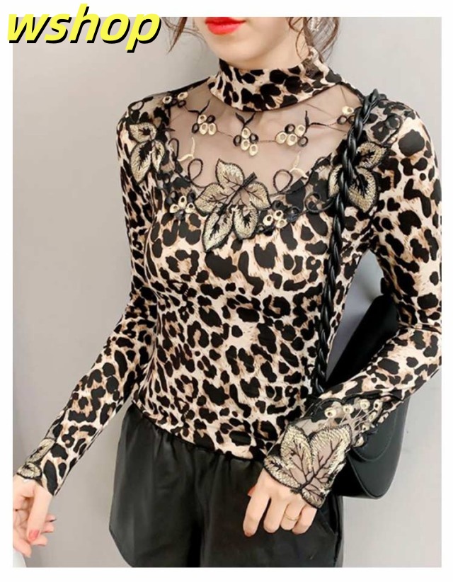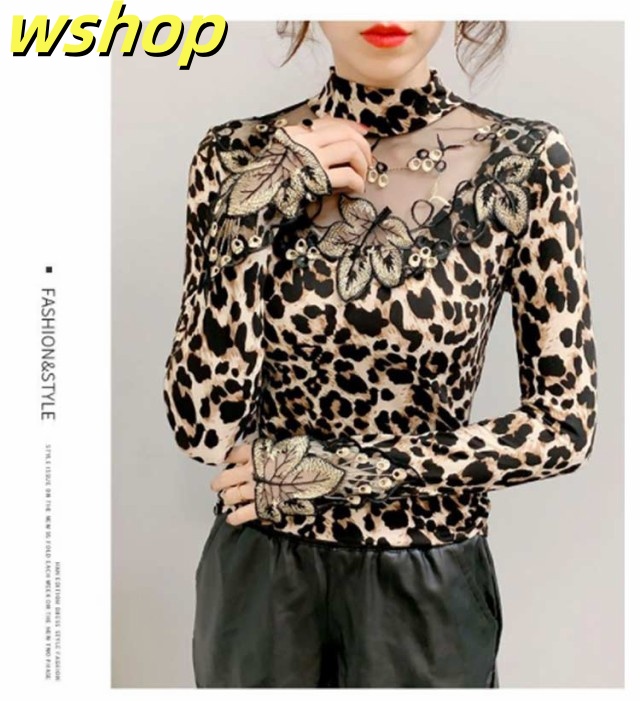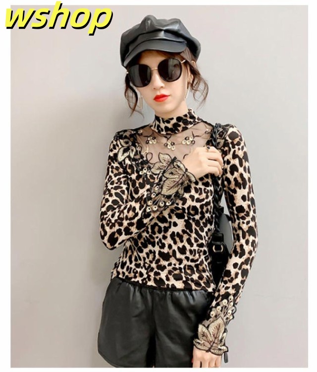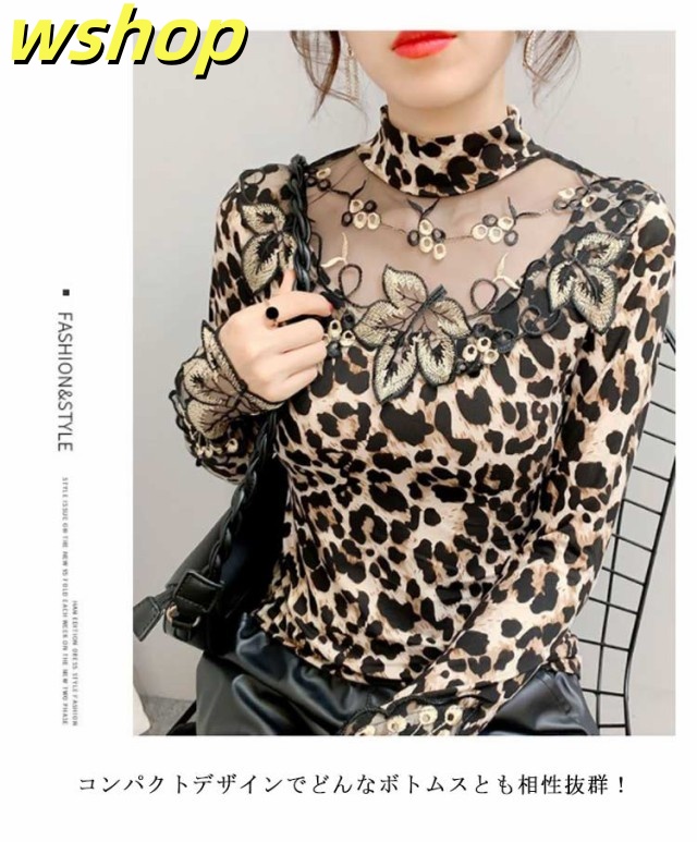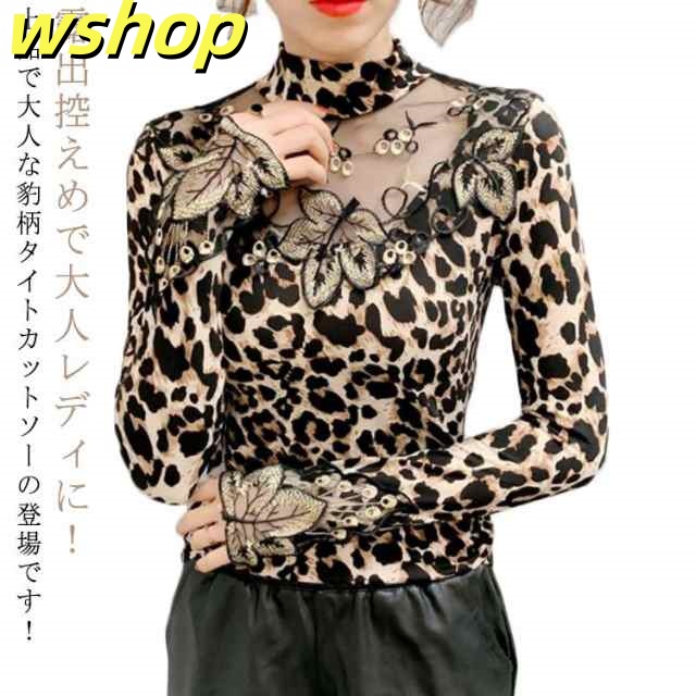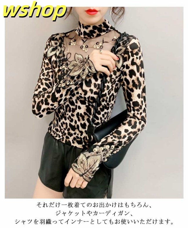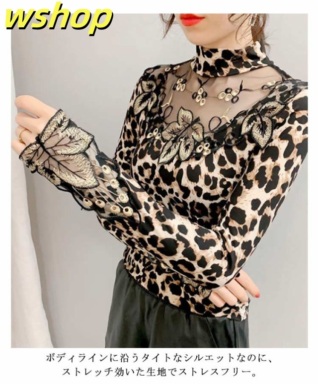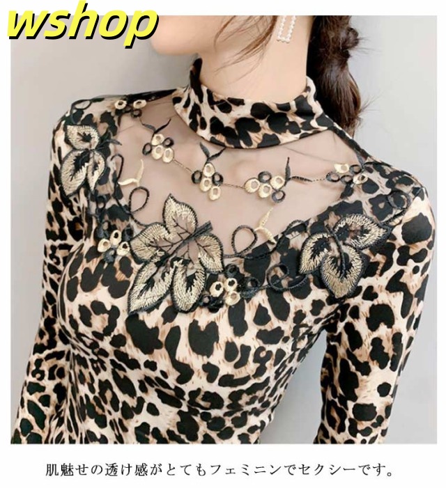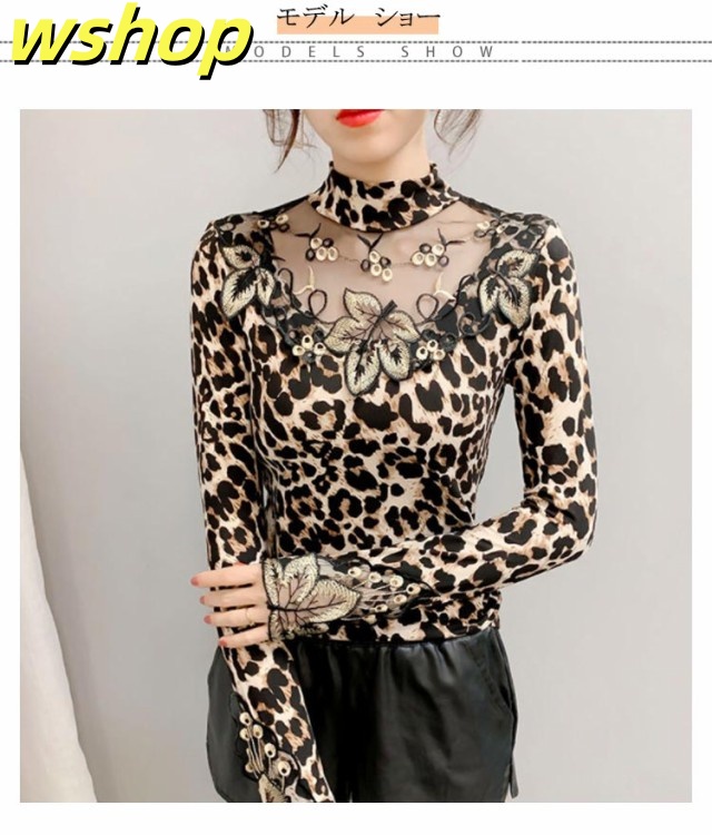 軽量仕様 SNS話題 トップス ストレッチ素材 きれいめ 長袖 【wshop タイト 大人 シースルー 大きいサイズ インナー 豹柄 秋冬 レディース ヒョウ柄 カットソー ギフト 透け感 重ね着 セクシー 】トップス 大人女性 tシャツ 着?せ シアートップス 今だけ限定