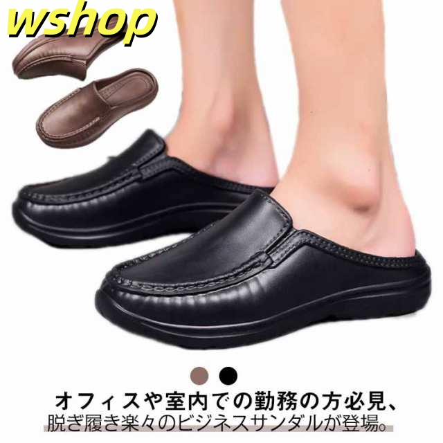 黒 メンズ かかとなし オフィスシューズ サンダル スリッポン ビジネスサンダル ビジネススリッパ スーツ おしゃれ 社内履き 防水 軽量 室内 オフィスサンダル
