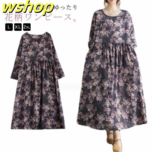 秋新作 ワンピース 花柄 大きいサイズレディース フレア ギャザーワンピース 長袖 長袖ワンピース 花柄 マキシ丈 秋服 マタニティ ロングワンピース 冬服 春服 ゆったり ワンピース