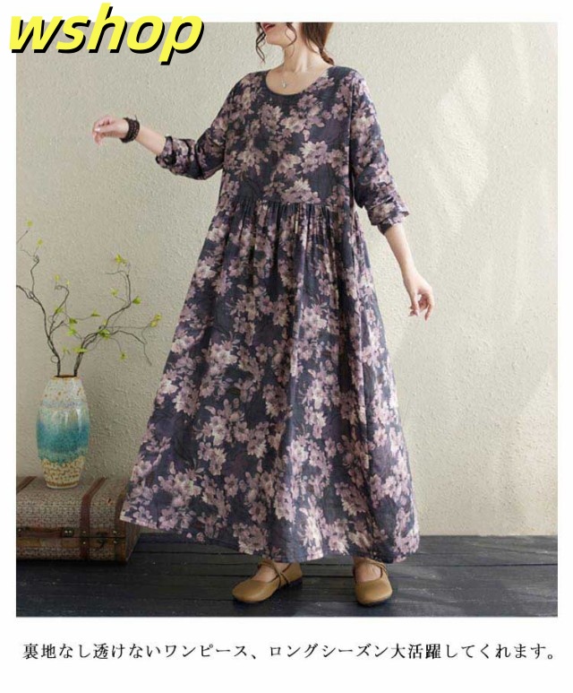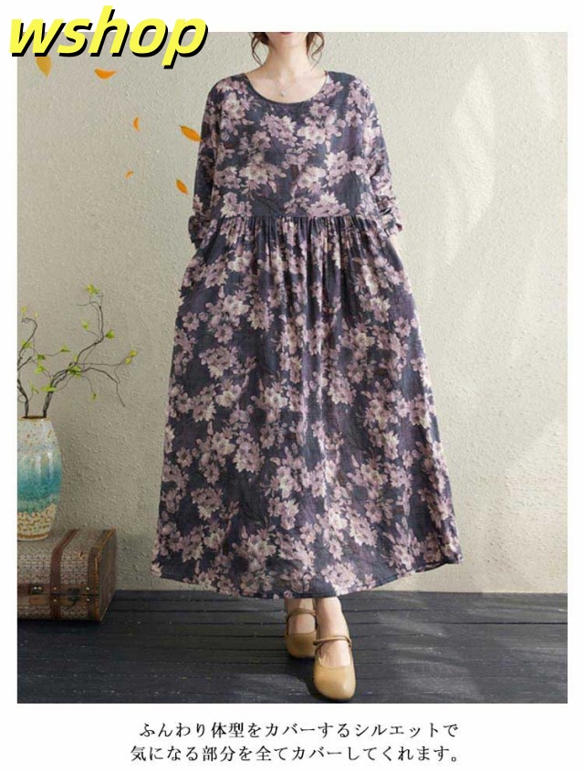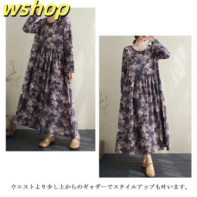 秋の新作特集 店長太鼓判 ゆったり マタニティ 即納OK フレア 長袖 SNS話題 】秋新作 ロングワンピース 【wshop 長袖ワンピース ギャザーワンピース 春服 ワンピース 冬服 花柄 秋服 大きいサイズレディース 送料無料 マキシ丈 数量限定入荷