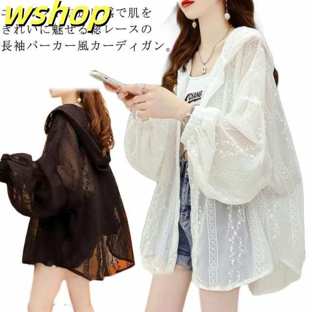 普段着 パーカー 刺繍 カーディガン フード付き トップス UV対策 サマーカーディガン 体型カバー 長袖 シアートップス 大きいサイズ ゆったり 着痩せ 可愛い 冷房対策 前開き シャツ カジュアル 通勤 OL お出掛け レディース