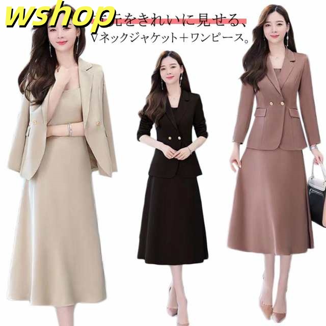 人気急上昇 ランキング常連 ノーカラー2点セットスーツ(ジャケットワンピース) 母 【wshop 卒園式 通勤 40代 】フォーマル 結婚式 レディース ママ オフィス 春秋 ママスーツ 30代 入園式 セットアップ スーツ セレモニースーツ ビジネス 入学式 20代 卒業式 送料無料