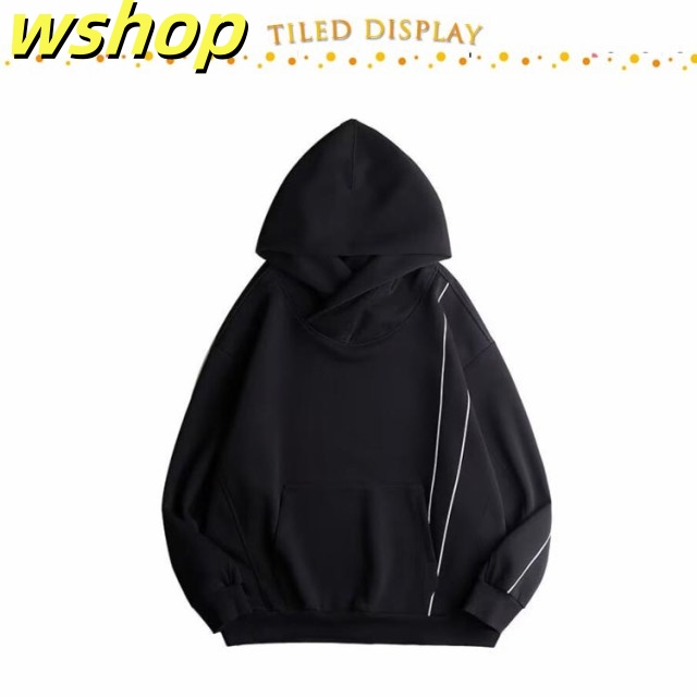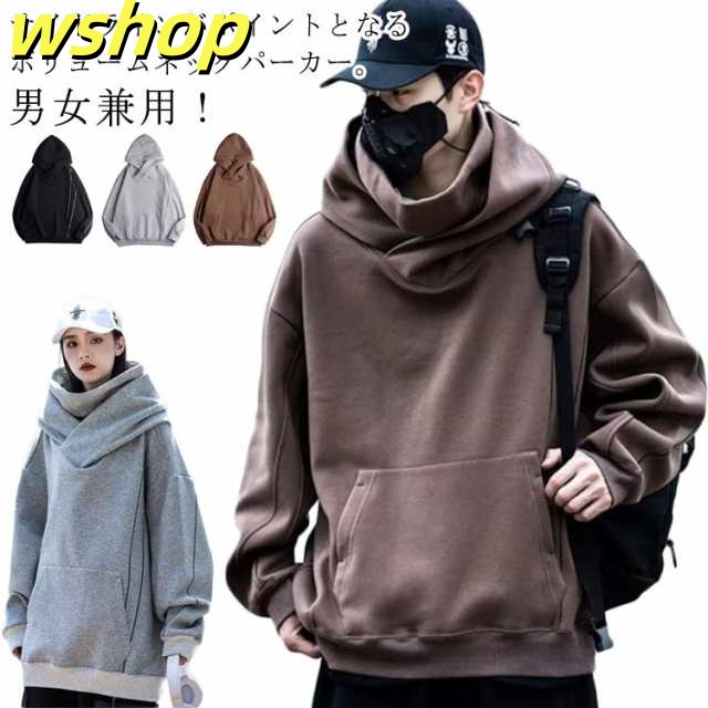 【wshop 】メンズ 長袖 レディース ボリュームネック 男女兼用 ハイネックパーカー 大きいサイズ プルオーバーパーカー スウェット トップス オーバーサイズ ビッグシルエットパーカー ボリュームネックパーカー おしゃれ ライン ゆったり 秋服 冬服