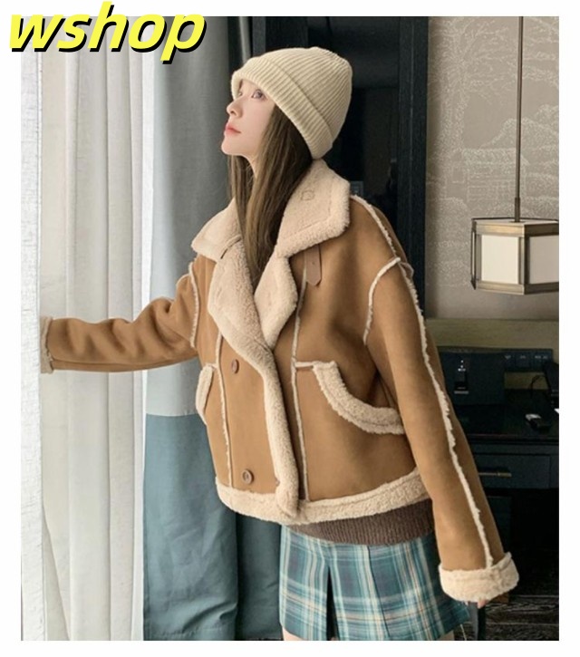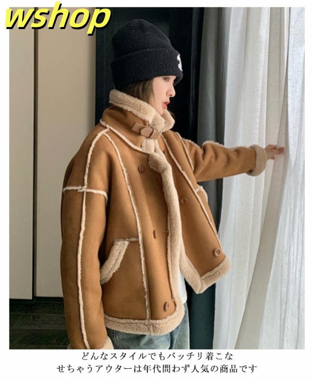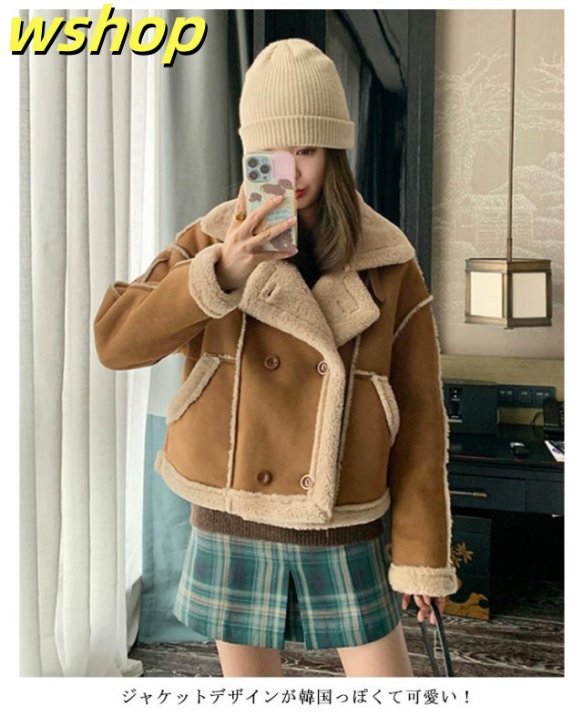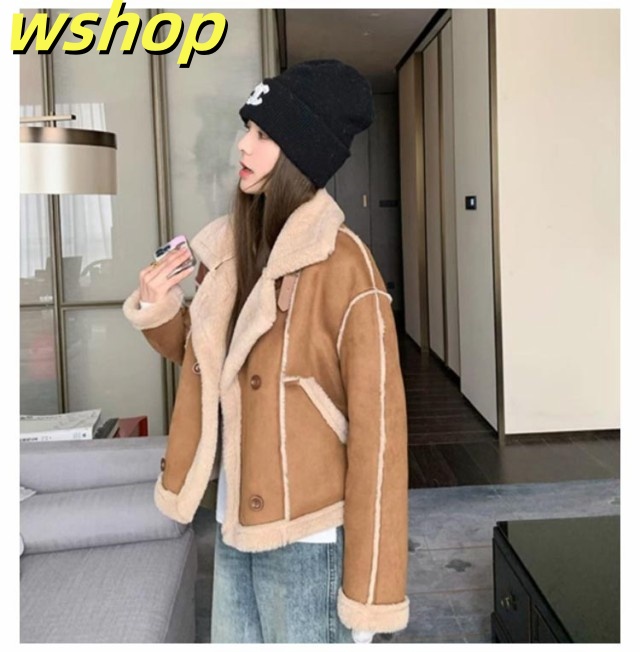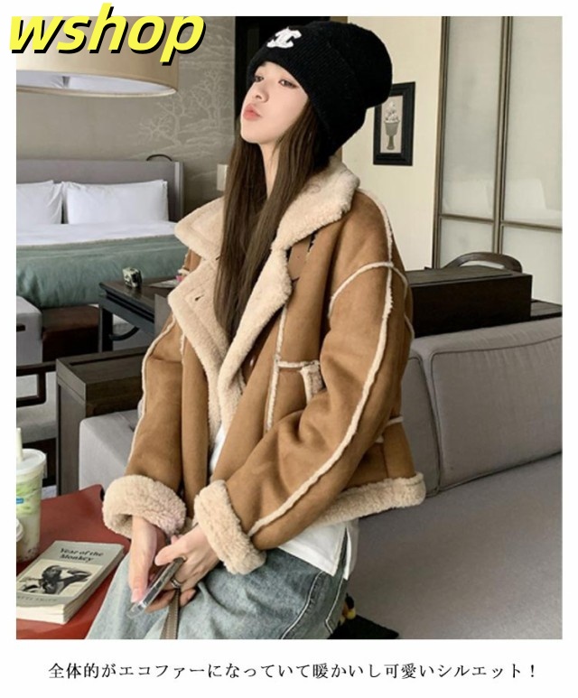 【wshop 】ボア スウェード 大きいサイズ コート ボア ライダースジャケット レディース フェイクムートン 暖かボア ムートンジャケット ライダース ジャケット もこもこ あったか 裏ボア ボアコート スエード スウェード 裏起毛 防寒 秋冬 秋 冬 韓国 ムートンコート