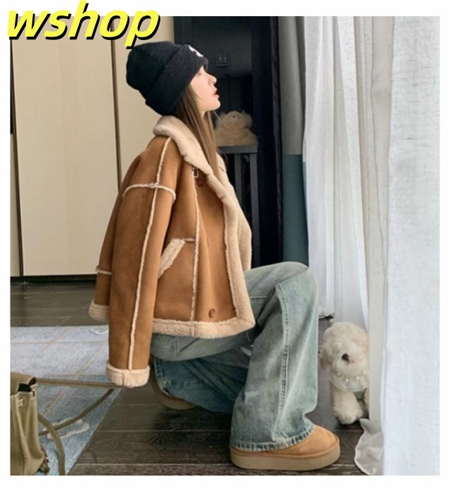 | S-XL 韓国デザインのムートン風ジャケット 全体的がエコファーになっていて暖かいし可愛いシルエット! ジャケットデザインが韓国っぽくて可愛い! どんなスタイルでもバッチリ着こなせちゃうアウターは年代問わず人気の商品です | |