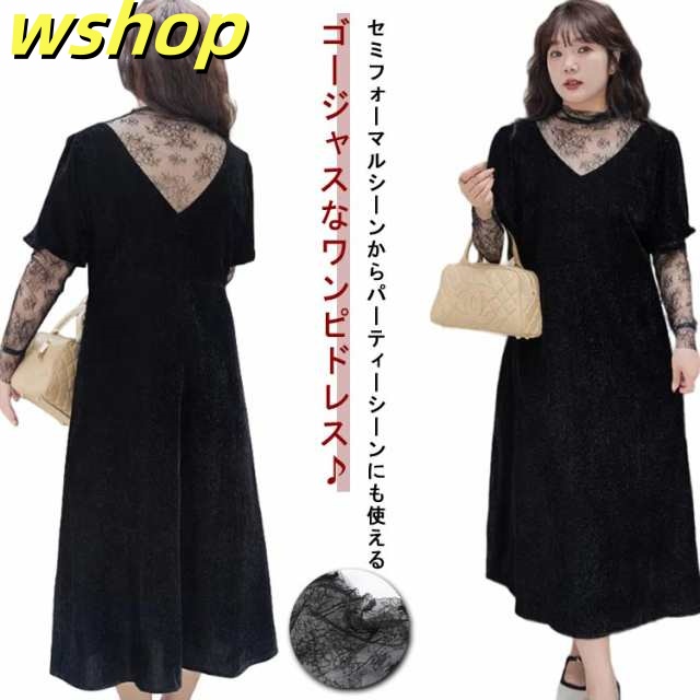 パーティードレス 大きいサイズ ぽっちゃり 体型カバー 透け感 フォーマル シースルー 冬 レース ワンピース ドレス 着痩せ 結婚式 20代 ドレス 40代 50代 長袖 春 夏 秋 お呼ばれ 30代 aライン おしゃれ 袖あり 韓国