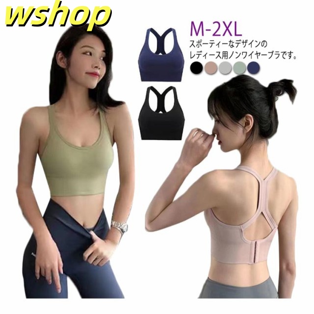 【wshop 】ピラティス ナイトブラ スポーツブラ ブラジャー スポブラ レディース インナー パッド付き スポーツウェア 女性用 エクササイズ 無地 ジム シンプル ヨガ ノンワイヤーブラ ランニング ジョギング フィットネス ブラック ベージュ グレー グリー ブルー ブラ
