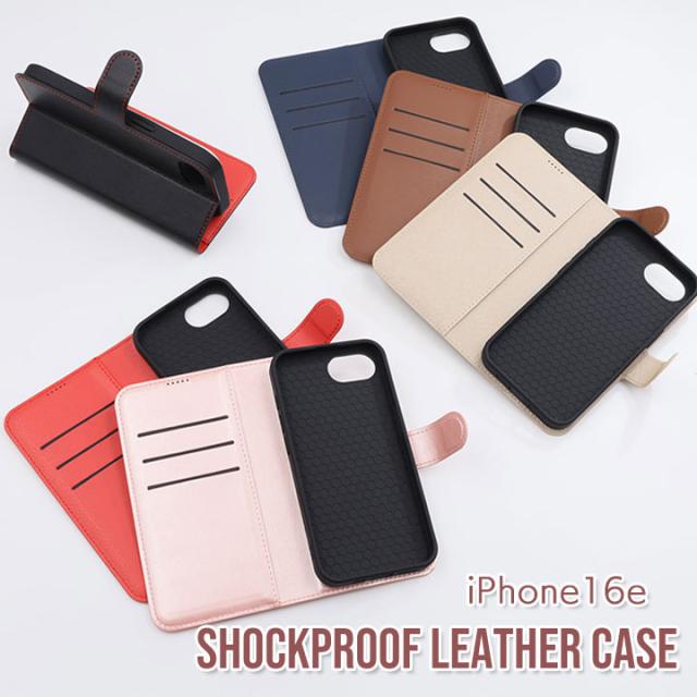 iPhone16e 耐衝撃 マグネットベルト シンプル 手帳型レザーケース ブラック ダークネイビー レッド ブラウン シャイニーピンク シャイニーベージュ メール便送料無料