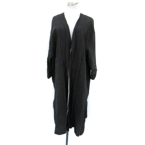 【中古】リオリンカ Riorinka スプリングコート ロング丈 前開き ノーカラー リネン F チャコールグレー レディース