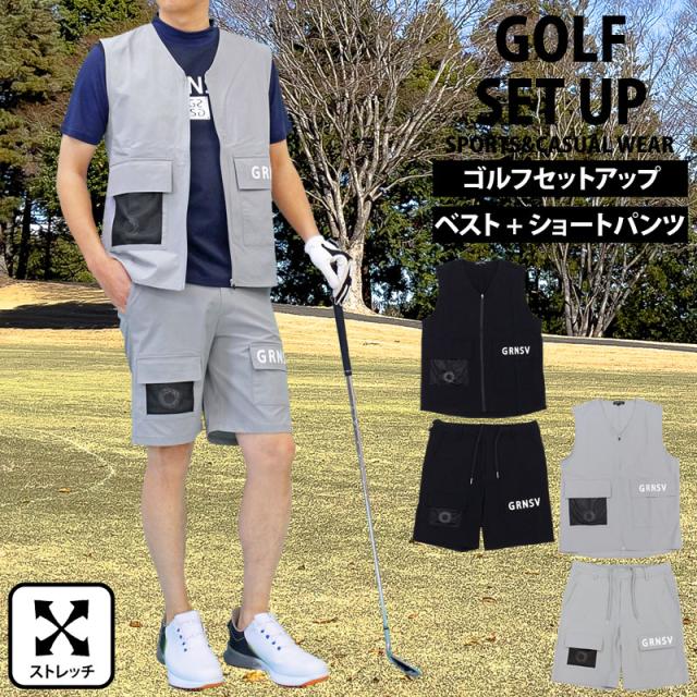 送料無料 ゴルフセットアップ メンズ 多機能 上下セット ゴルフウェア GIORNO SEVEN ジョルノセブン ゴルフショートパンツ ベスト ポリエステルストレッチ おしゃれ 春夏