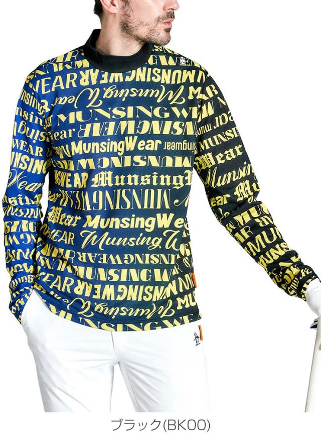 マンシングウェア ENVOY サンスクリーン グラデーションロゴ総柄 モックネック 長袖シャツ ゴルフウェア メンズ M-LL MEMXJB03