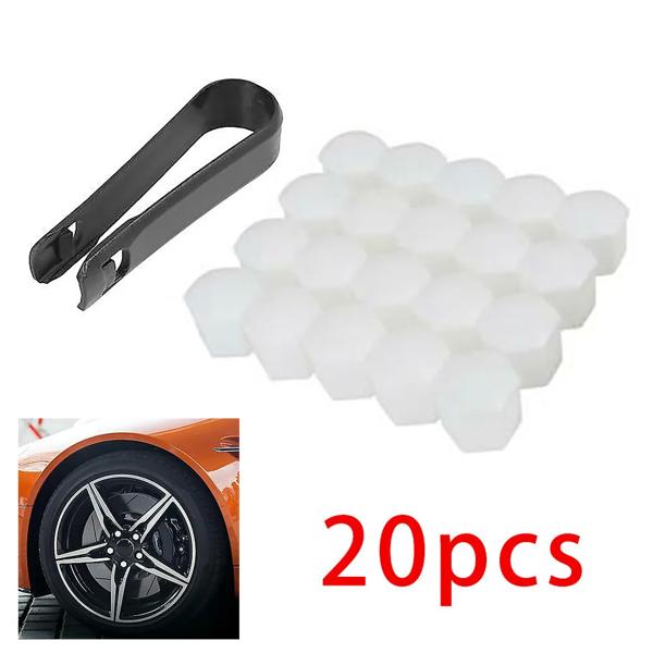 ユニバーサルホワイトホイールナット,19mm,20個,ボルトカバー,ダストキャップ,ホイールカバー