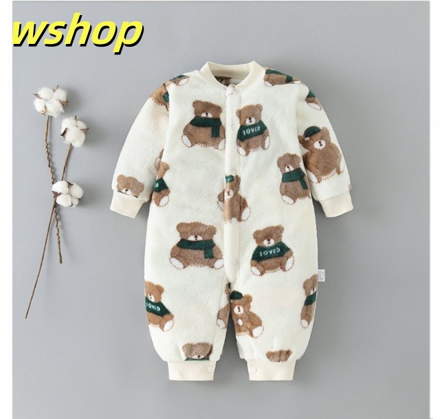 家中時間充実化 品質安心 厚手 パジャマ SNS話題 もこもこ 軽量仕様 女の子 つなぎ 長袖 フリース 秋 ベビー服 出産祝い 【wshop 女児 男の子 あったか 春 防寒 前開き カバーオール 】ロンパース 暖かい 男児 フランネル 在庫わずか お買い得プライス