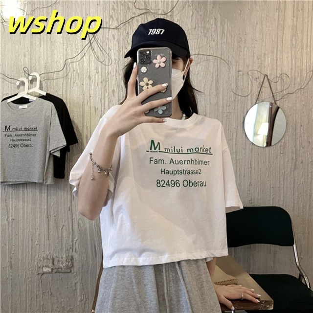 Tシャツレディース半袖夏 ショート丈へそ出しトップス韓国 ファッション 原宿系ヒップホップダンス衣装ストリート 風カジュアルゆるい