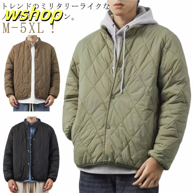 | M-5XL!トレンドのミリタリーライクなノーカラーブルゾン。 とっても軽い上にしっかりとした防寒性があり暖かいのが人気の秘訣。 ひょうたん型のキルティングによって中綿が偏りにくく、全体をバランスよく暖めてくれます。 首元は、人気の高いノーカラータイプでスッキリとした 印象をキープ。 アウターとしてはもちろん、室内で肌寒い時に羽織ったり、車移動やワンマイルウエアとしても大活躍! 真冬にはロングコートのインナーとしても活躍してくれる優れモノです。 | |