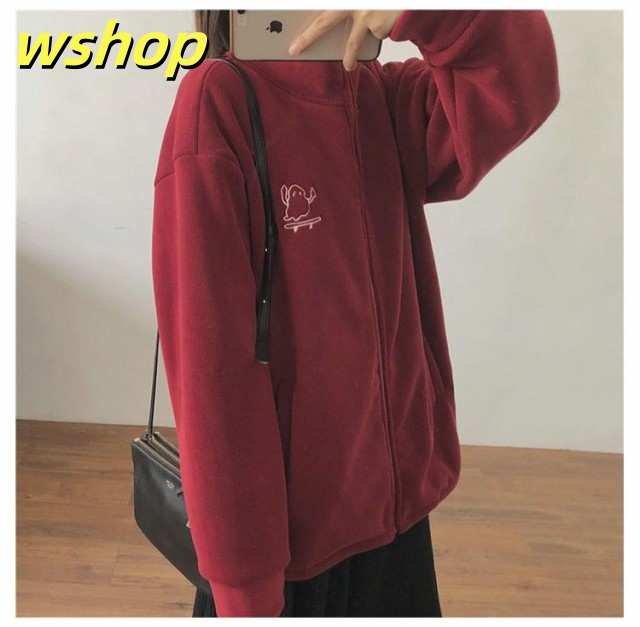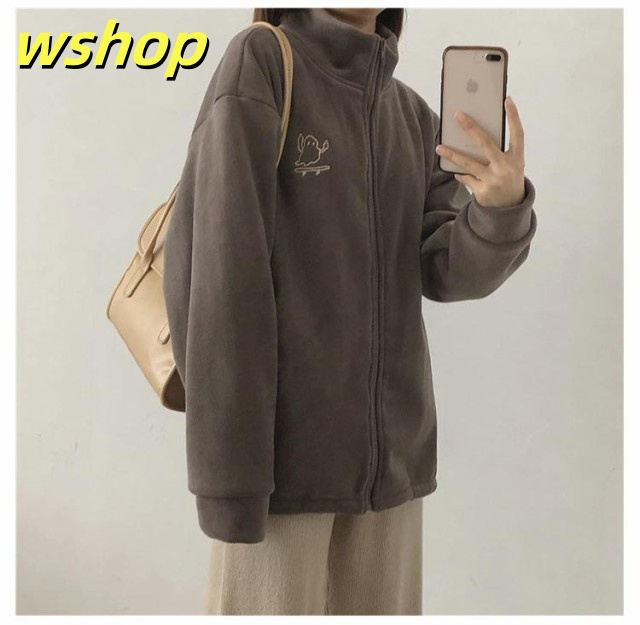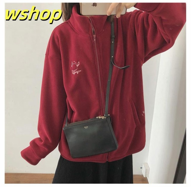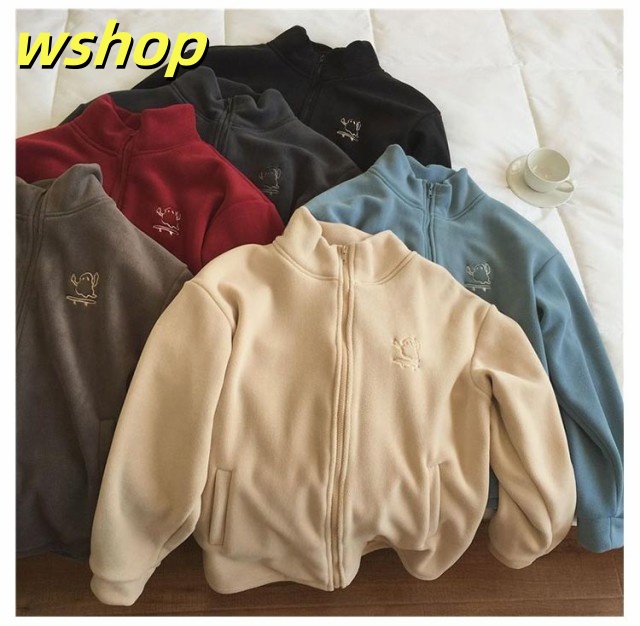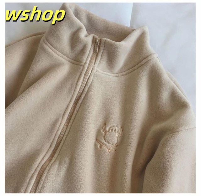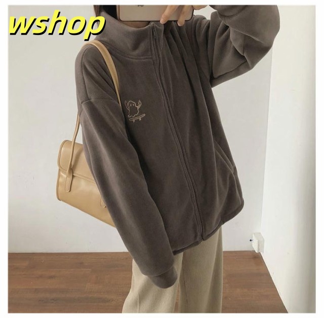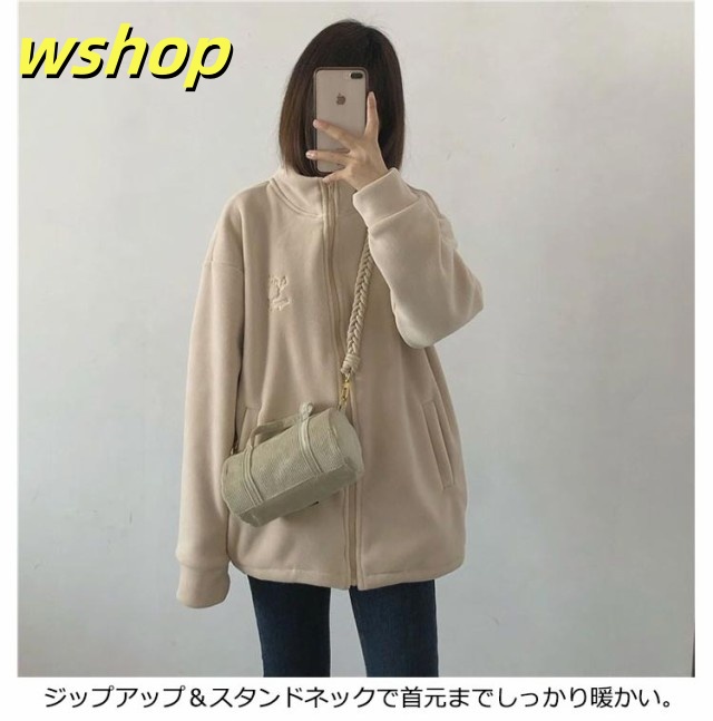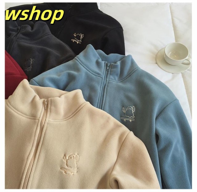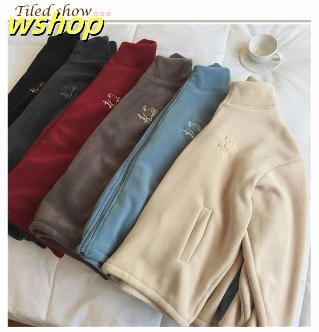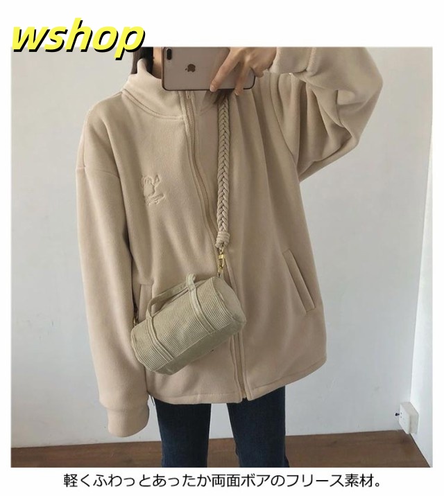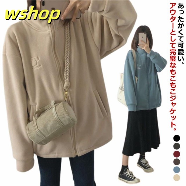 収納便利 売上急増中 スウェット スタンドネック ジップジャケット ジッパー 長袖 コート フリース 】刺繍 あったか 秋冬 ブルゾン レディース 無地 両面ボア パーカー 【wshop ノーカラー ジャケット ジャンパー アウター 極暖 軽い コーラルフリース 送料無料