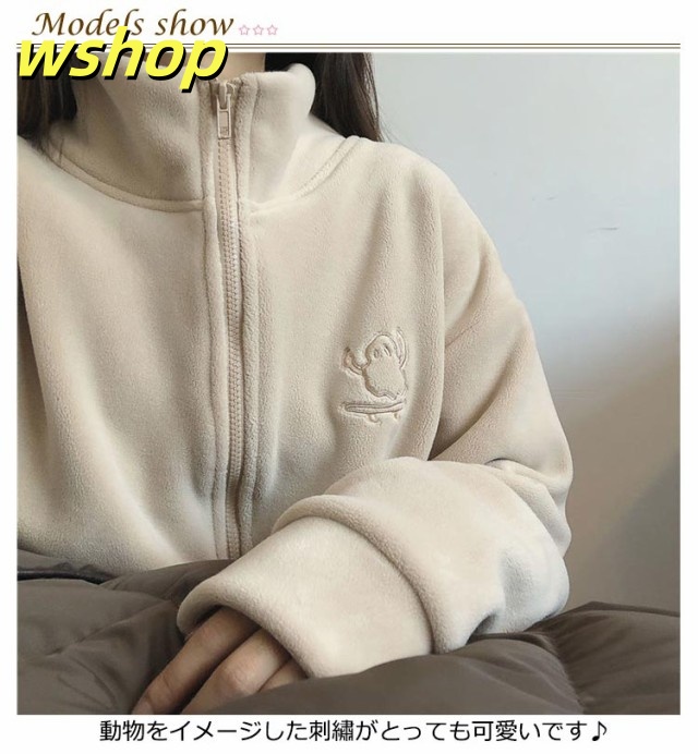 刺繍 パーカー 軽い ジャケット 両面ボア レディース フリース ジップジャケット 極暖 アウター コート ジャンパー ジッパー スウェット 秋冬 スタンドネック ブルゾン 長袖 ノーカラー あったか 極暖 コーラルフリース 無地