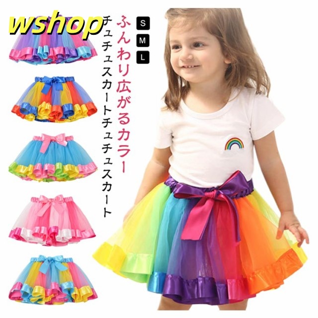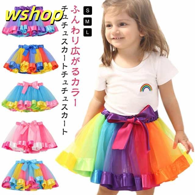 売れ筋アイテム 毎日使える便利品 チュール 】レインボー 発表会 演出 売上急増中 ダンス衣装 キッズ 演奏会 チュチュスカート チュールスカート 団体 スカート 収納便利 ふんわり 在庫わずか 【wshop 子供 レインボー 子供バレエ 即納対応中