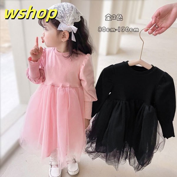 季節限定アイテム ギフトにも最適 結婚式 ベビー 幼児 ピンク 七五三 スウィート 【wshop 丸首 演出 】ワンピース 今だけ ブラック 長袖 受験用 SNS話題 ワンピ キッズ ワンピース 新登場 80-130 子供服 女の子 送料無料実施中