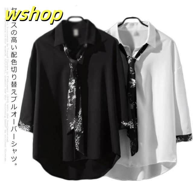 注目ランキング上位 多機能デザイン おしゃれ 原宿系 プルオーバー 春夏 韓国ファッション SNS話題 メンズ 今だけ カジュアルシャツ 【wshop モダン トップス ストライプ 長袖 シャツ 】送料無料 新作 リボンネクタイ付き 人気急上昇 花柄 数量限定入荷
