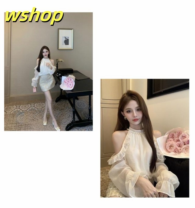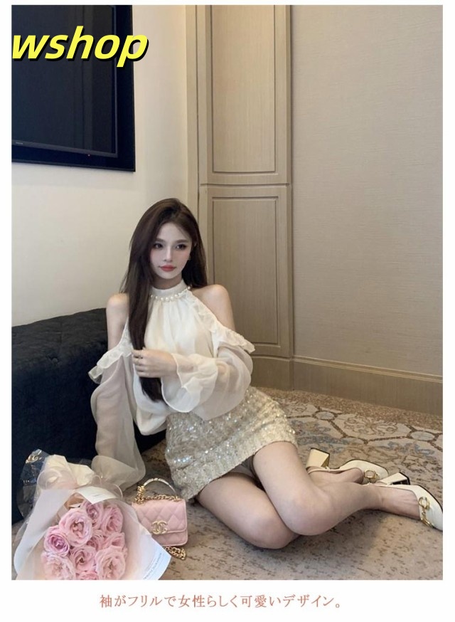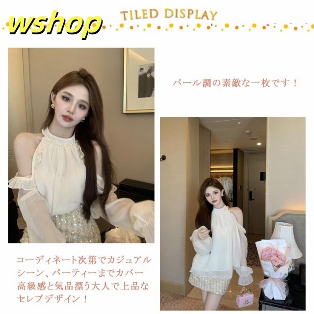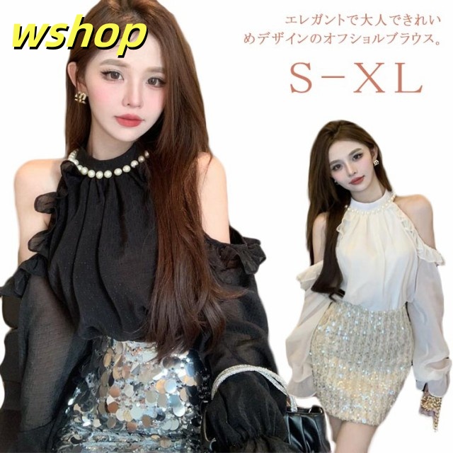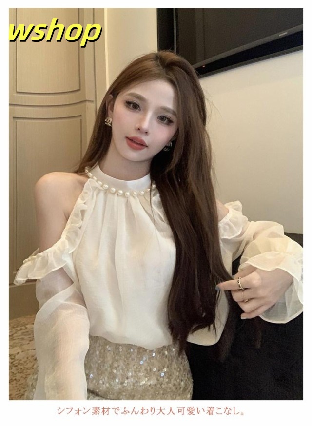 収納便利 SNS話題 シフォン ホルターネック 大人 シフォンシャツ M パーティー 二次会 パール調 オフショルブラウス オフショルダー 】パール調 ベージュ 長袖 レディース 30代 かわいい 【wshop ブラウス ブラック 40代 シャツ トップス 50代 肩出し L S 在庫わずか