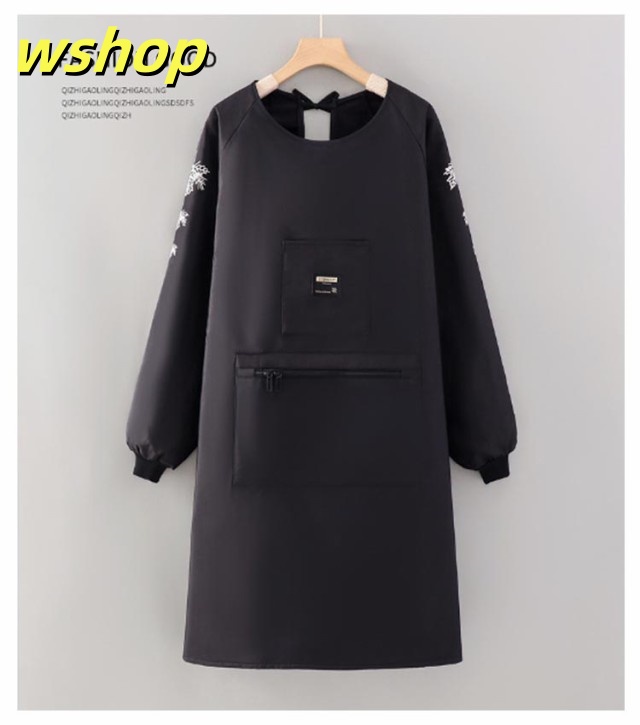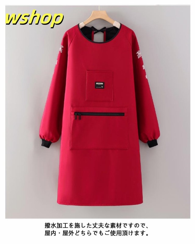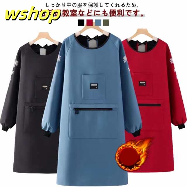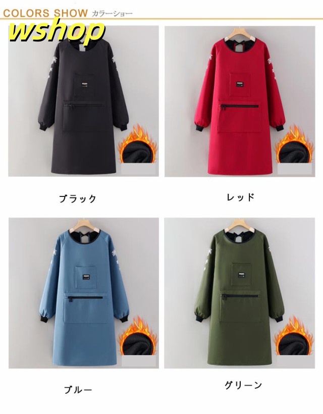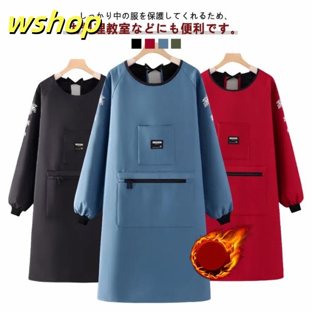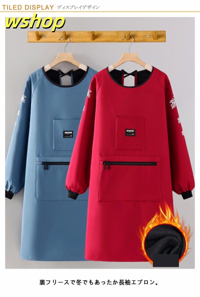 【wshop 】袖カバー 女性用 エプロン 長袖エプロン 防水 作業着 かっぽう着 割烹着 裏起毛 大きなポケット あったか 袖口リブ 裏ボア 冬用エプロン 大きいサイズ 腕カバー 冬 防水 撥水 防汚 暖かい ユニセックス レディース メンズ 保育士 介護士 ガーデニング 料理教室