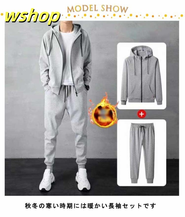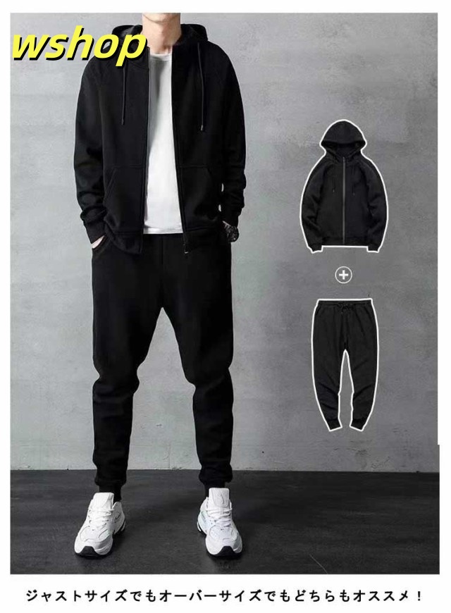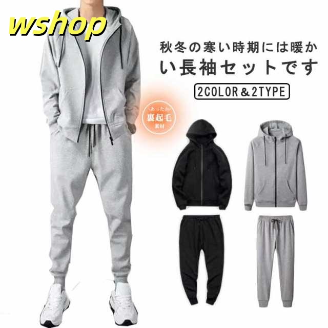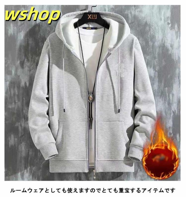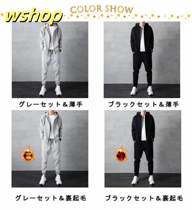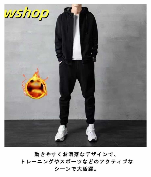 【wshop 】メンズ 上下セット スポーツ フルジップ 部屋着 冬 パーカー 厚手 フード付き ジップパーカー 裏起毛 ジップアップ トレーナー 裏ボア スウェットパンツ 暖かい セットアップ 大きいサイズ 防寒 秋冬 スエット スウェット ルームウェア ボトムス 冬 冬服
