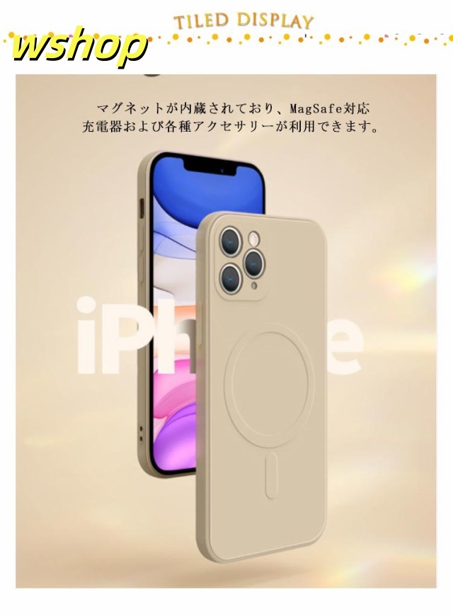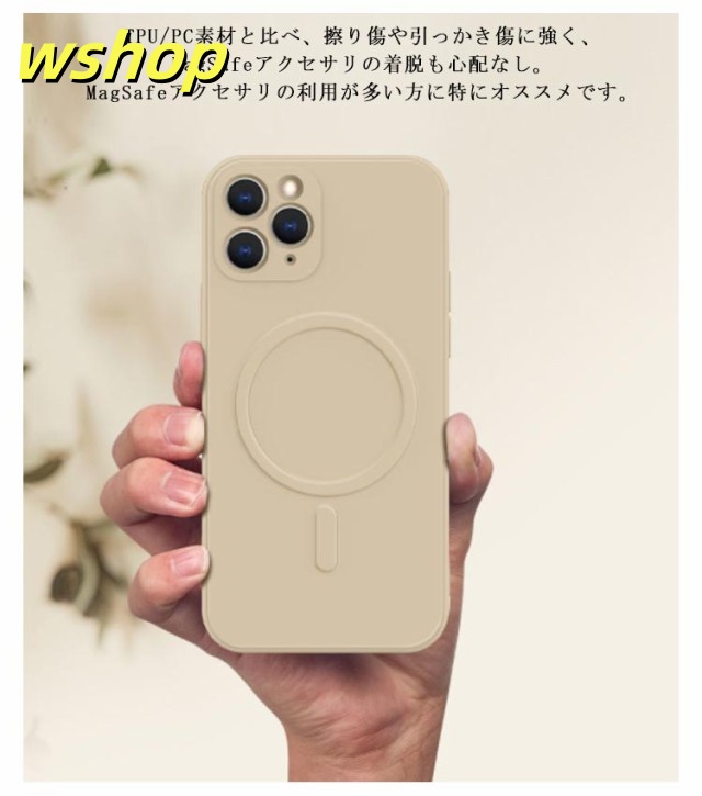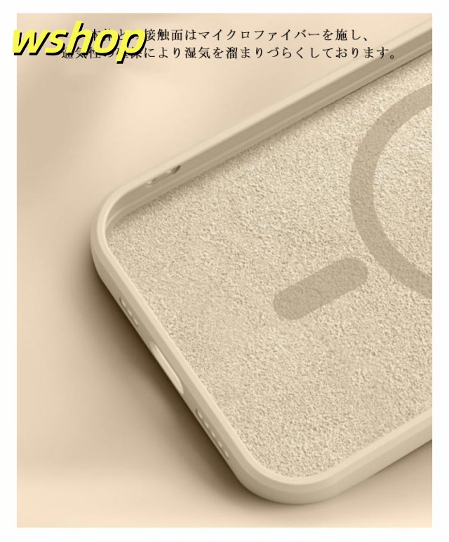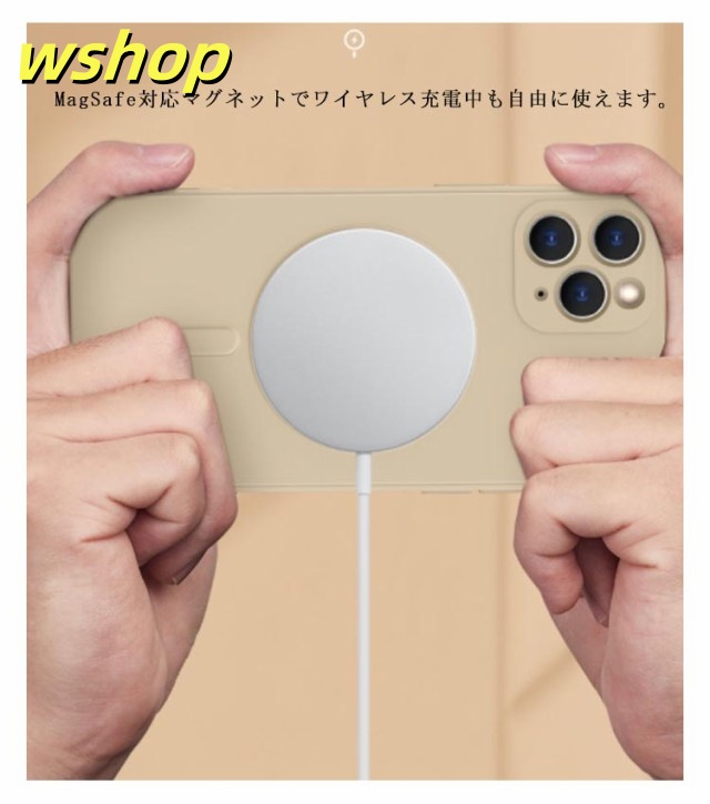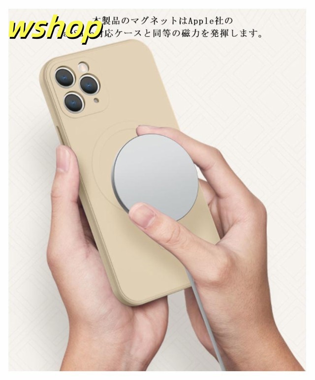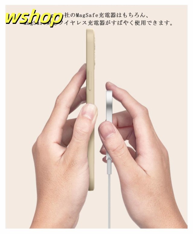 | MagSafe対応のシリコンスケースの発売です。 マグネットが内蔵されており、MagSafe対応充電器および各種アクセサリーが利用できます。 生活がもっと便利になる、MagSafe対応アクセサリーが楽しめます。 衝撃吸収性に優れたTPU(ウレタン)のハイブリット構造で、あなたのスマートフォンのデザインを活かしながらも頼もしく保護します。 本体との接触面はマイクロファイバーを施し、通気性の確保により湿気を溜まりづらくしております。 Apple社のMagSafe充電器はもちろん、MagSafe対応ワイヤレス充電器がすばやく使用できます。 MagSafe対応マグネットでワイヤレス充電中も自由に使えます。 TPU/PC素材と比べ、擦り傷や引っかき傷に強く、MagSafeアクセサリの着脱も心配なし。MagSafeアクセサリの利用が多い方に特にオススメです。 高弾力のTPUで、着脱も簡単。外部からの衝撃を優しく吸収します。 本製品のマグネットはApple社のMagSafe対応ケースと同等の磁力を発揮します。 | |