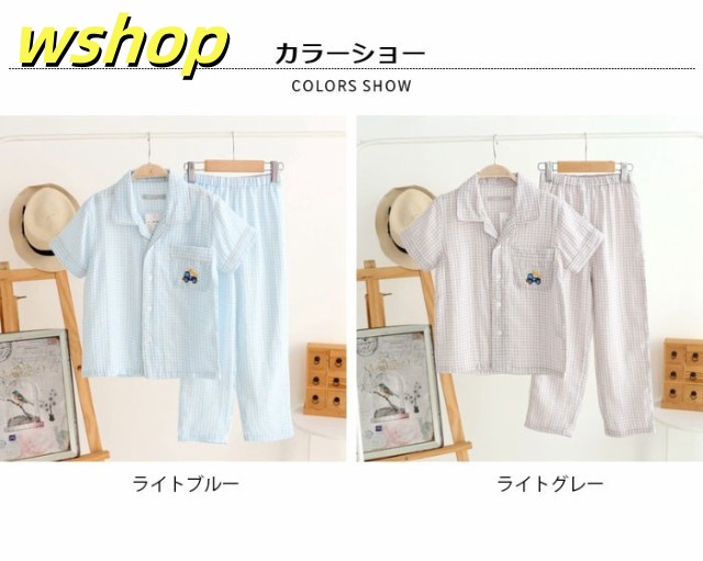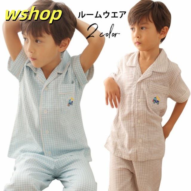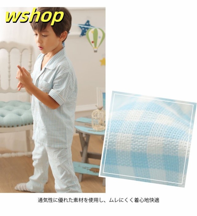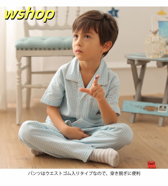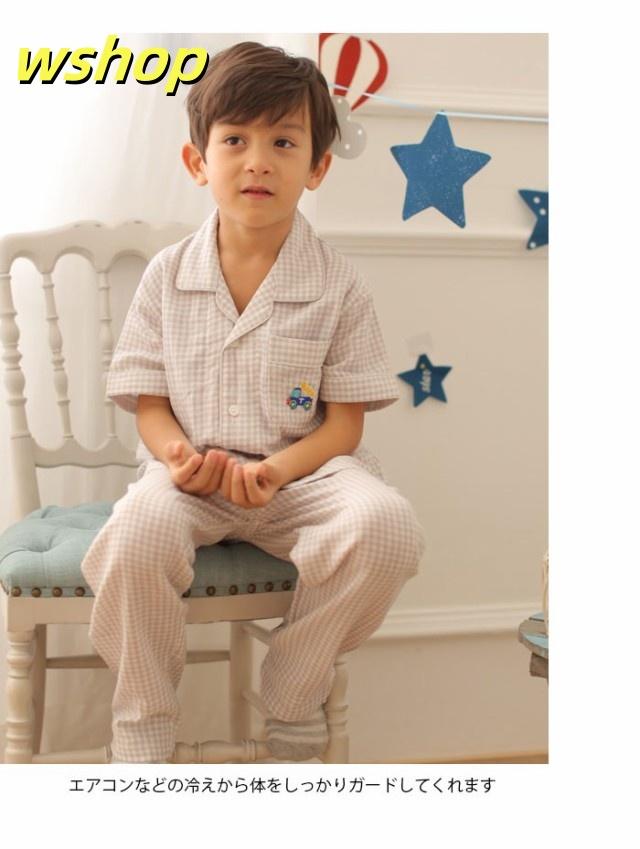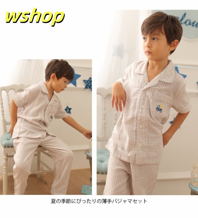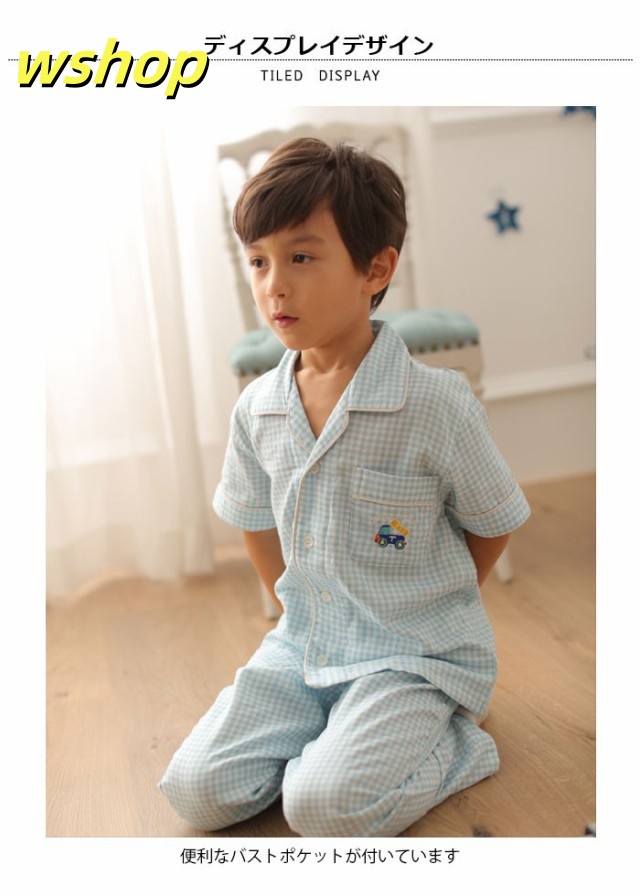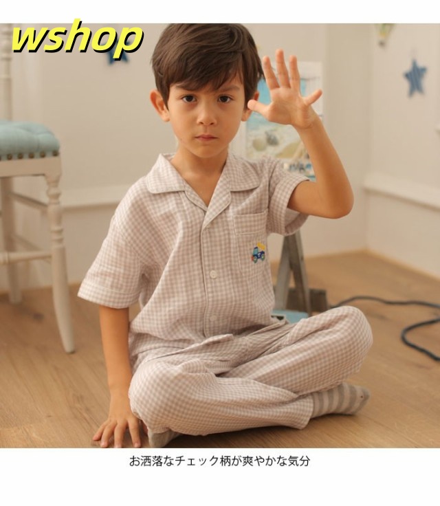 売れ筋アイテム ギフトにも最適 上下セット バストポケット付き 男の子 SNS話題 送料無料 ロングパンツ ルームウエア 薄手 部屋着 子供服 刺繍 半袖 寝間着 パジャマ 】チェック柄 新登場 【wshop ナイトウエア お買い得プライス