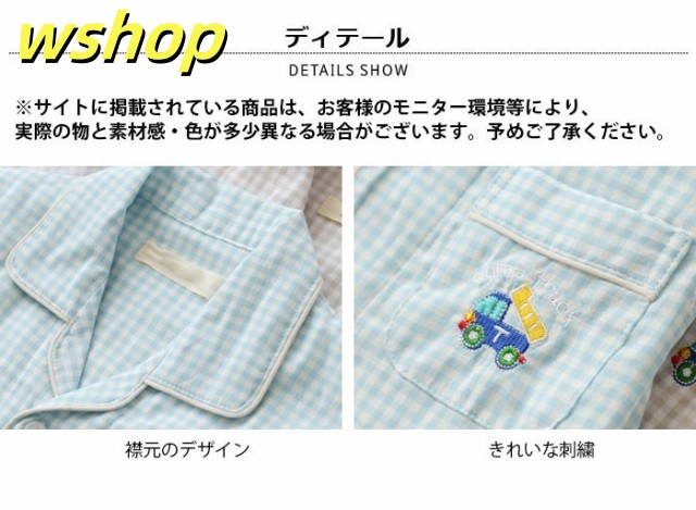チェック柄 刺繍 パジャマ 子供服 男の子 上下セット 半袖 ロングパンツ ナイトウエア ルームウエア 部屋着 寝間着 薄手 バストポケット付き